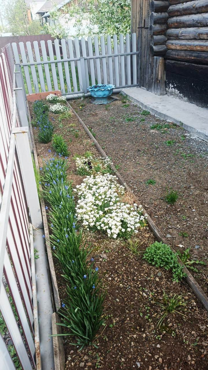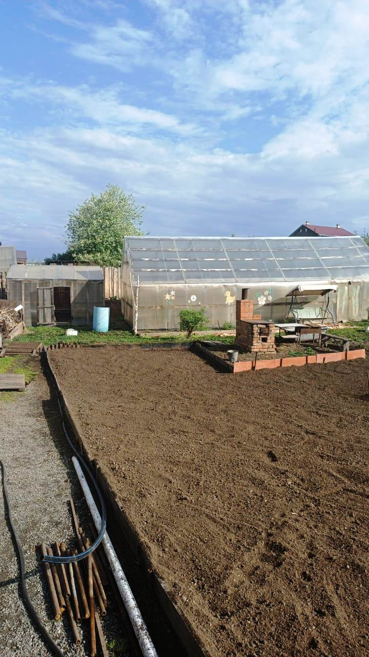 Гараж, хоз. постройки, участок ухоженный, две теплицы, много ягодных кустов, яблоня, вишня, многолетние цветы.