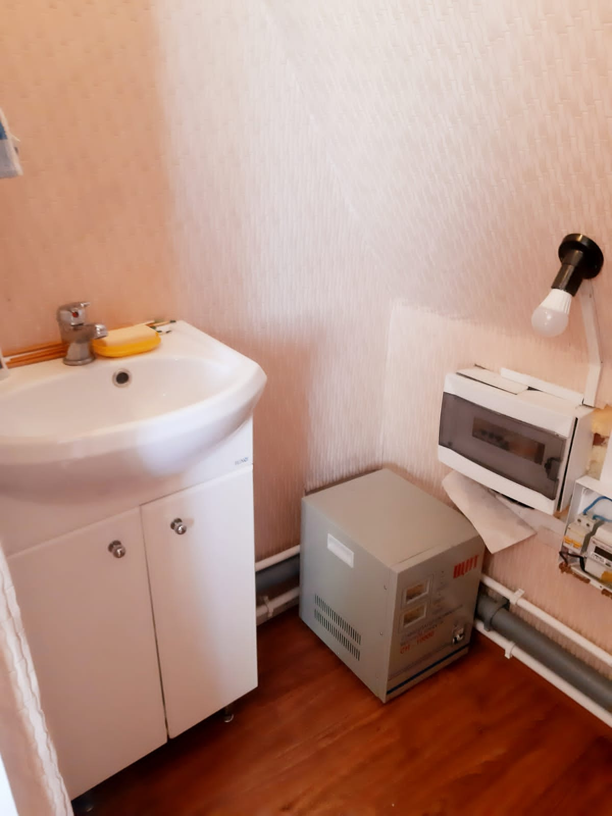 Дом находится в 12 км от города, рядом автобусная остановка, магазин, школа.