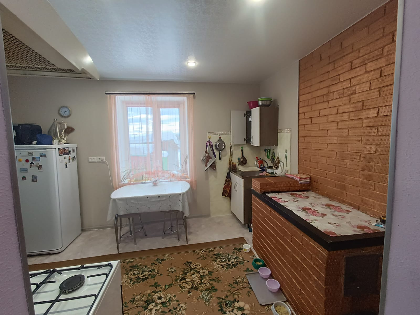 В доме: 3 комнаты, большая ванна, туалет, большая кухня.