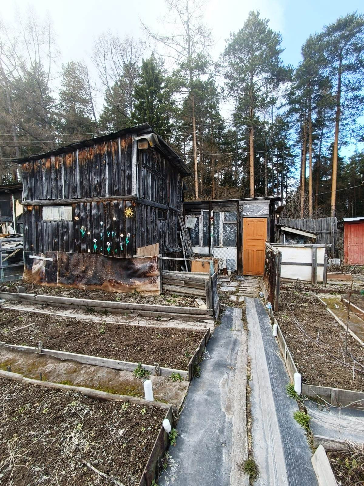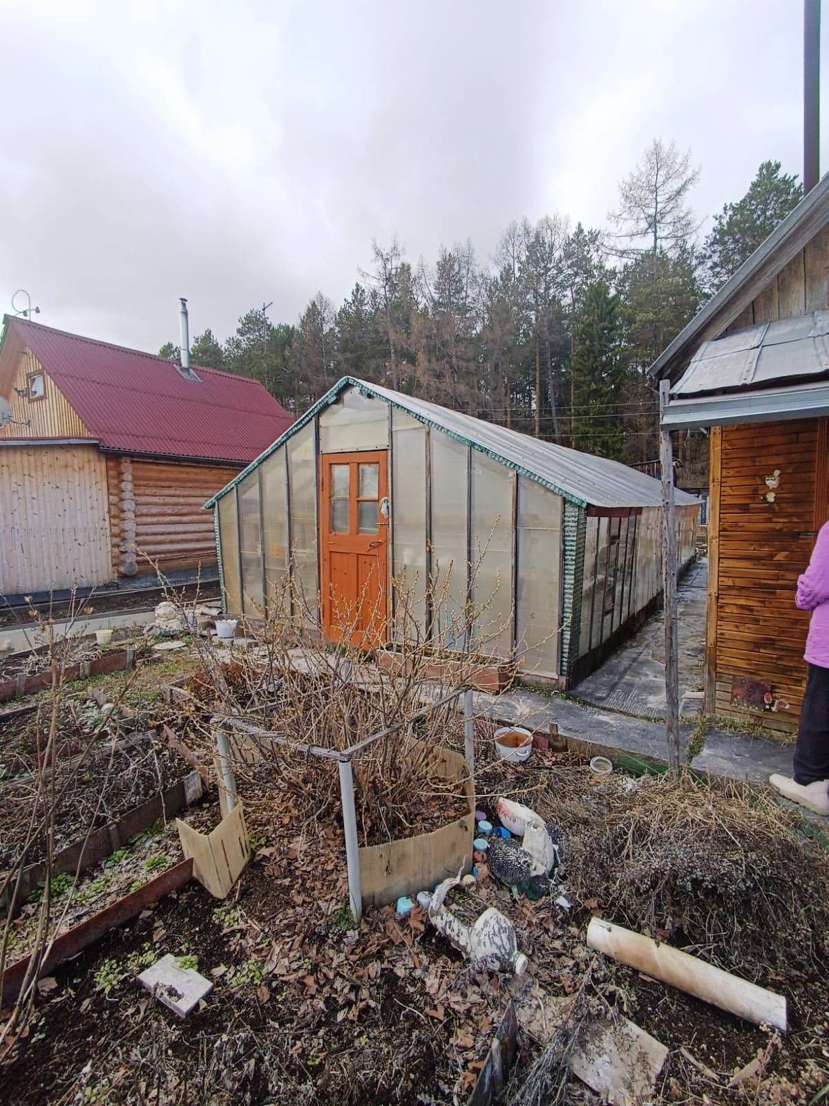 На участке не большой домик (комната+веранда), перестелены полы, две теплицы (поликарбонат поменян в 2023 году), сарай для инвентаря, туалет.