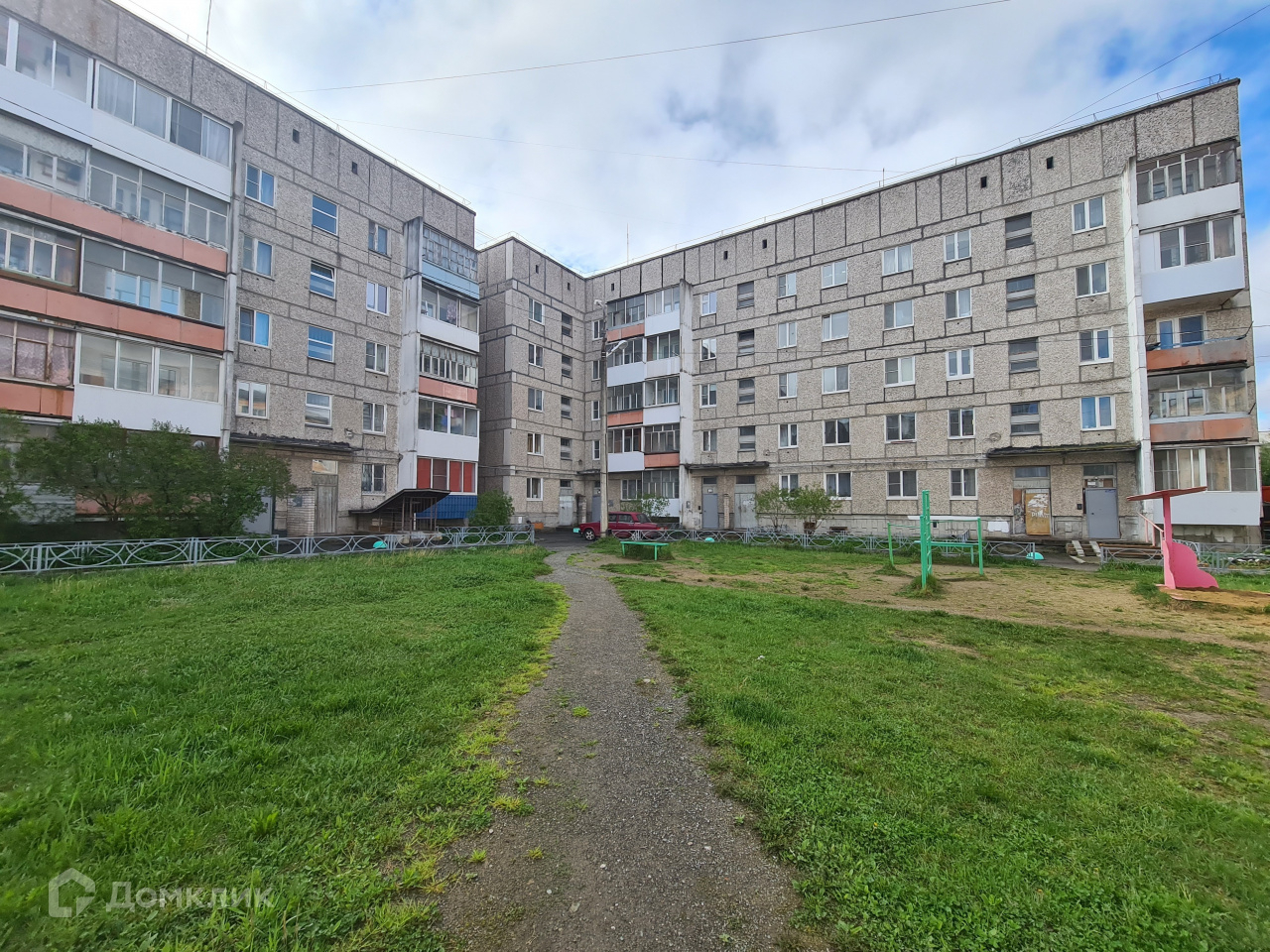 Во дворе парковка и детская площадка.
