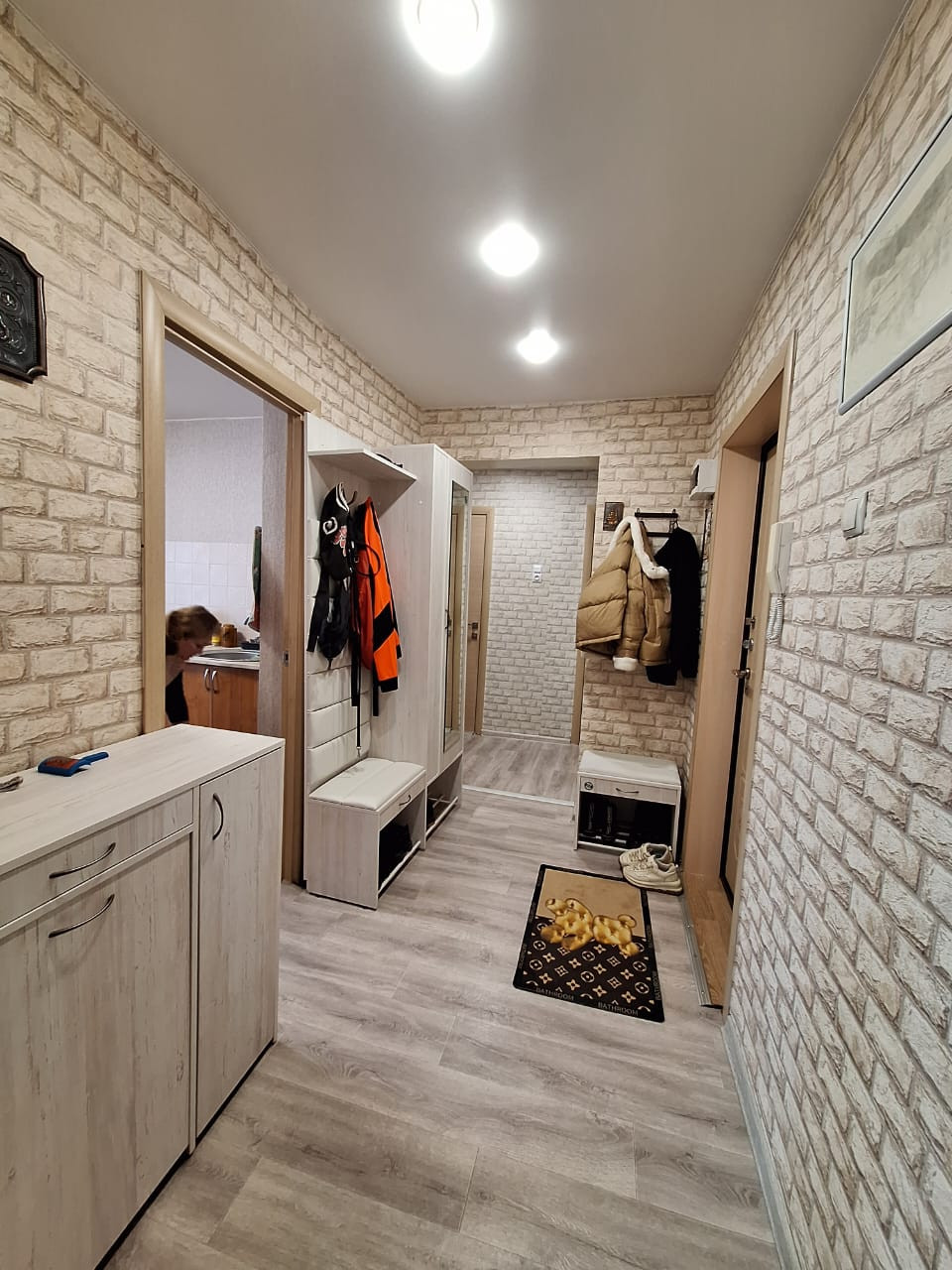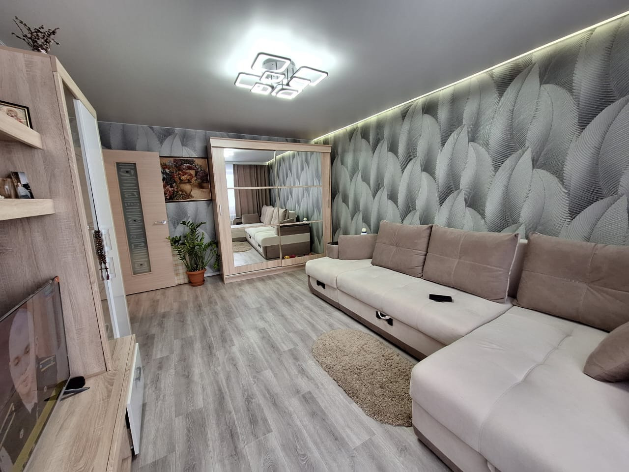 C/узeл раздельный, в современном в кафеле. Сантехника в отличном состоянии. Новые трубы, счётчики. Натяжные потолки с точечными энергосберегающими светильниками. Кухня большая и удобная (9 м2). В качестве бонуса остаётся кухонный гарнитур (без техники)  и почти вся мебель .