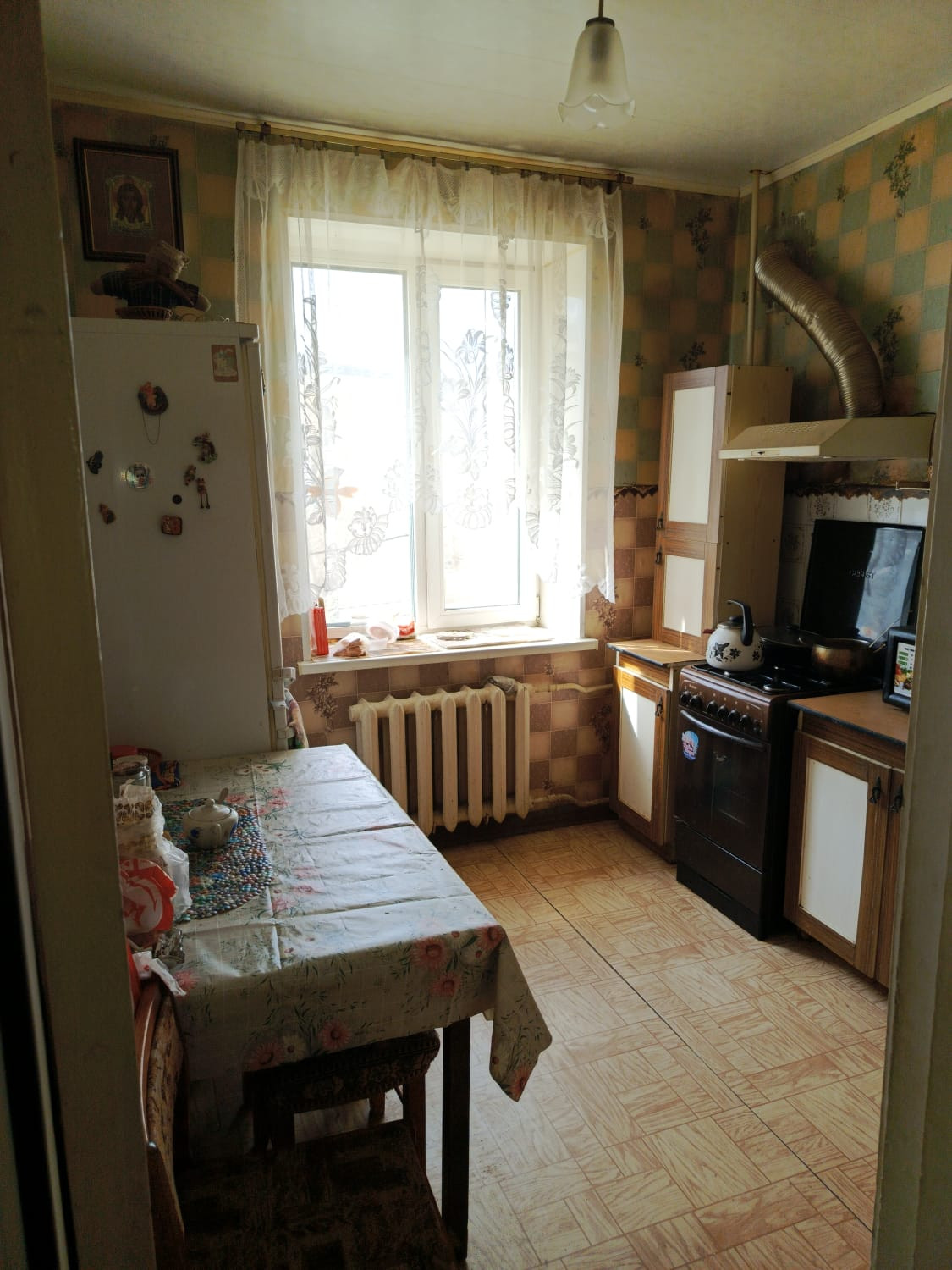 В продаже квартира старого типа, высокие потолки, комнаты изолированные, санузел раздельно, просторная прихожая, большая лоджия.