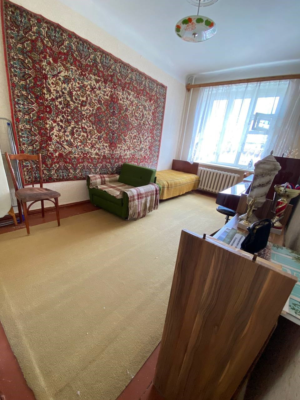 - Три окна и балкон квартиры выходят на Тихомировский парк: всегда замечательный вид и много света. Одно окно выходит на здание администрации.