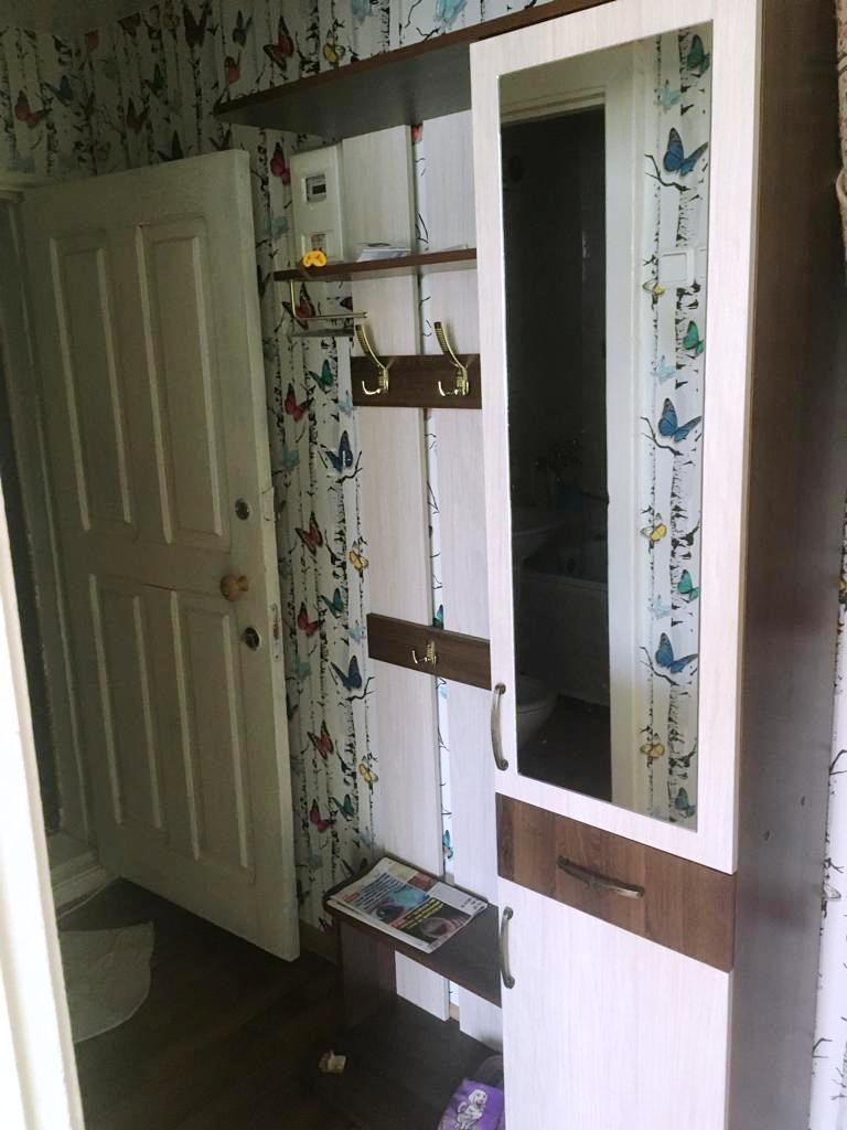Окна пластиковые (во двор), кухонный гарнитур, микроволновка, холодильник, стиральная машинка, телевизор.