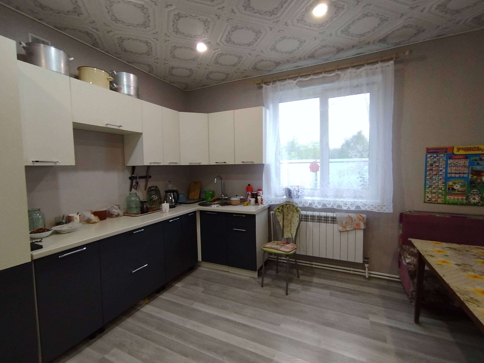 На 1 этаже большая кухня, просторная гостиная, сан. узел.