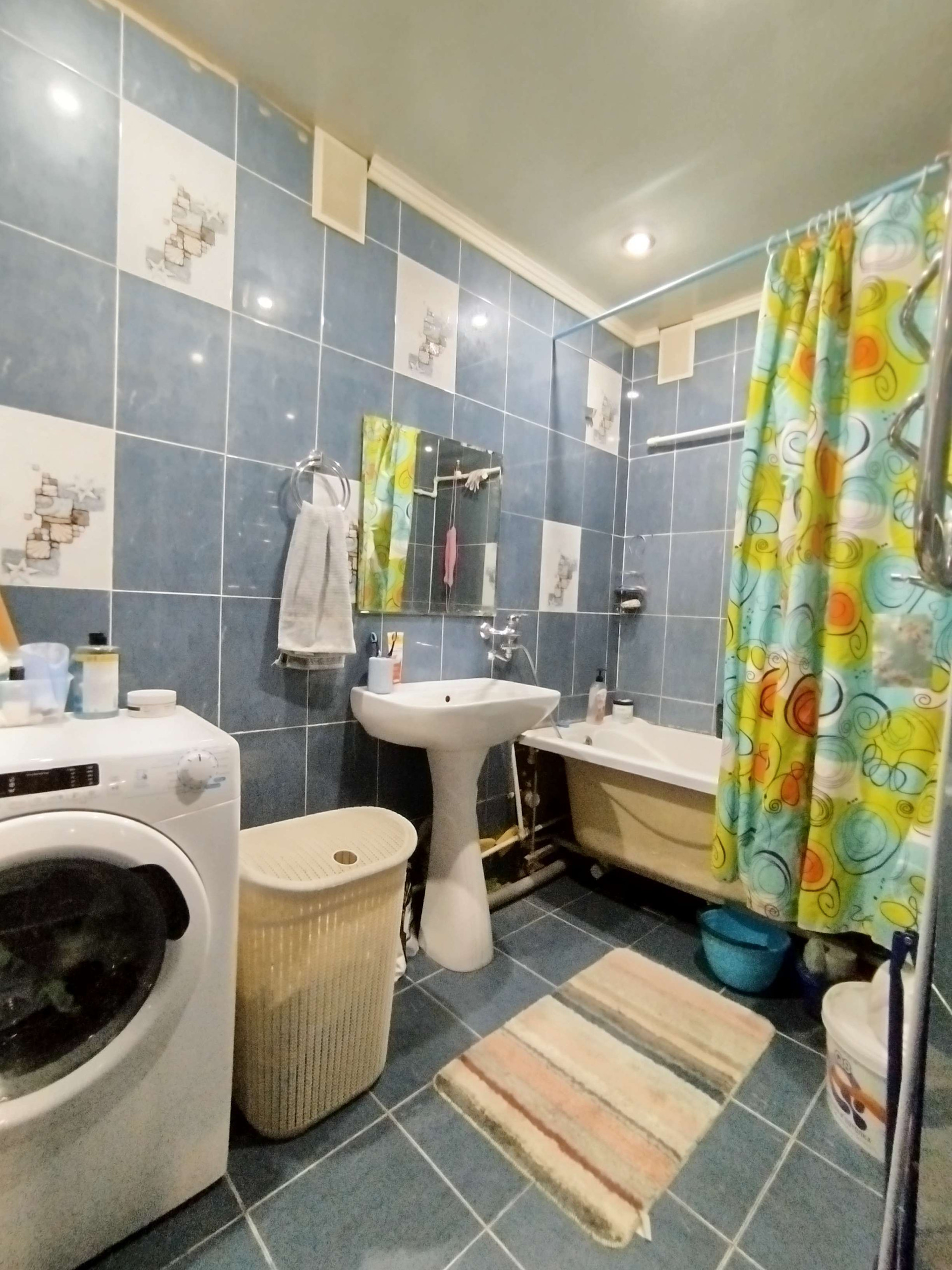 Просторная кухня, три комнаты, большая ванная комната, туалет раздельно.