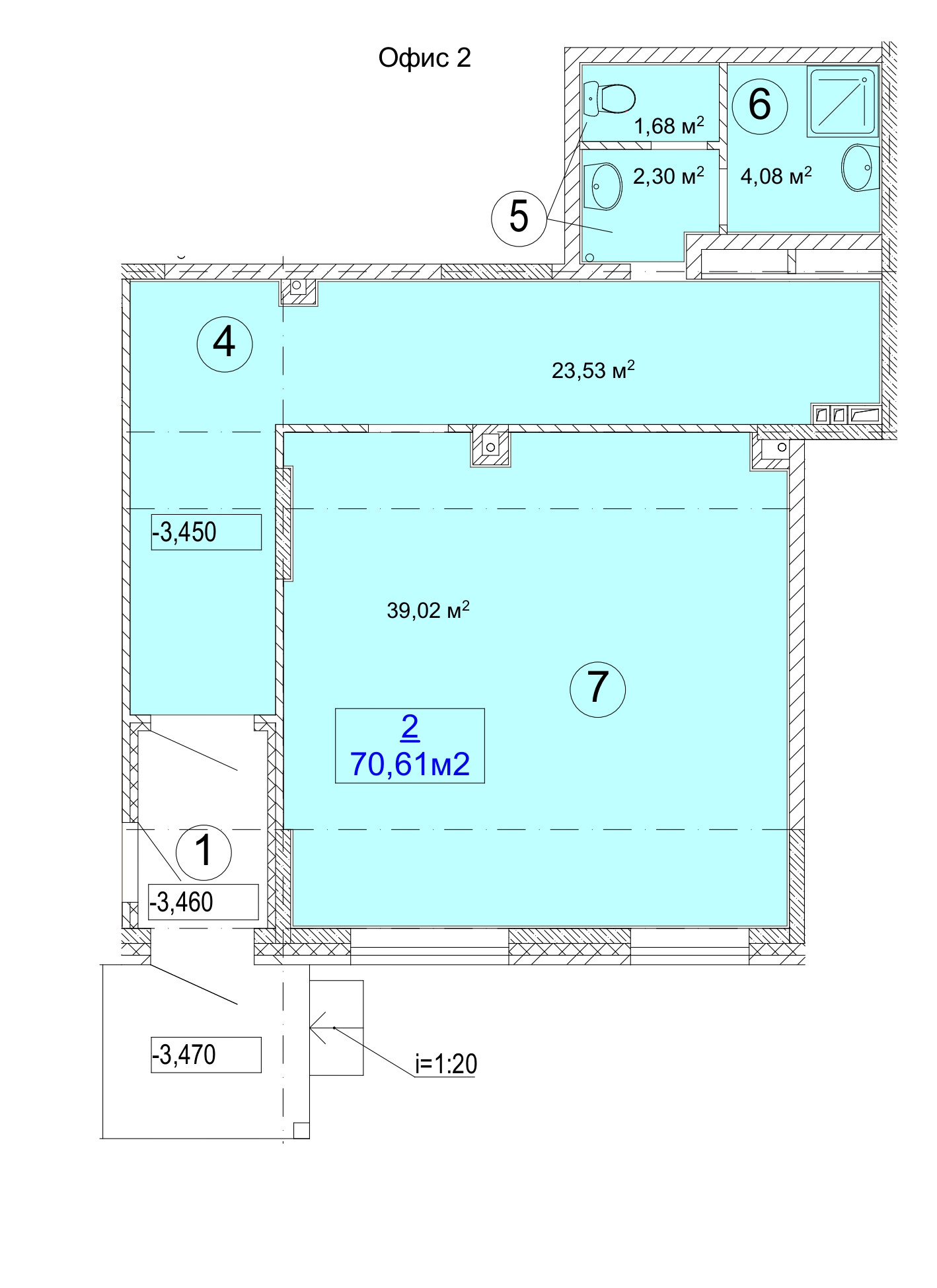 Общая площадь 70.61 м2
