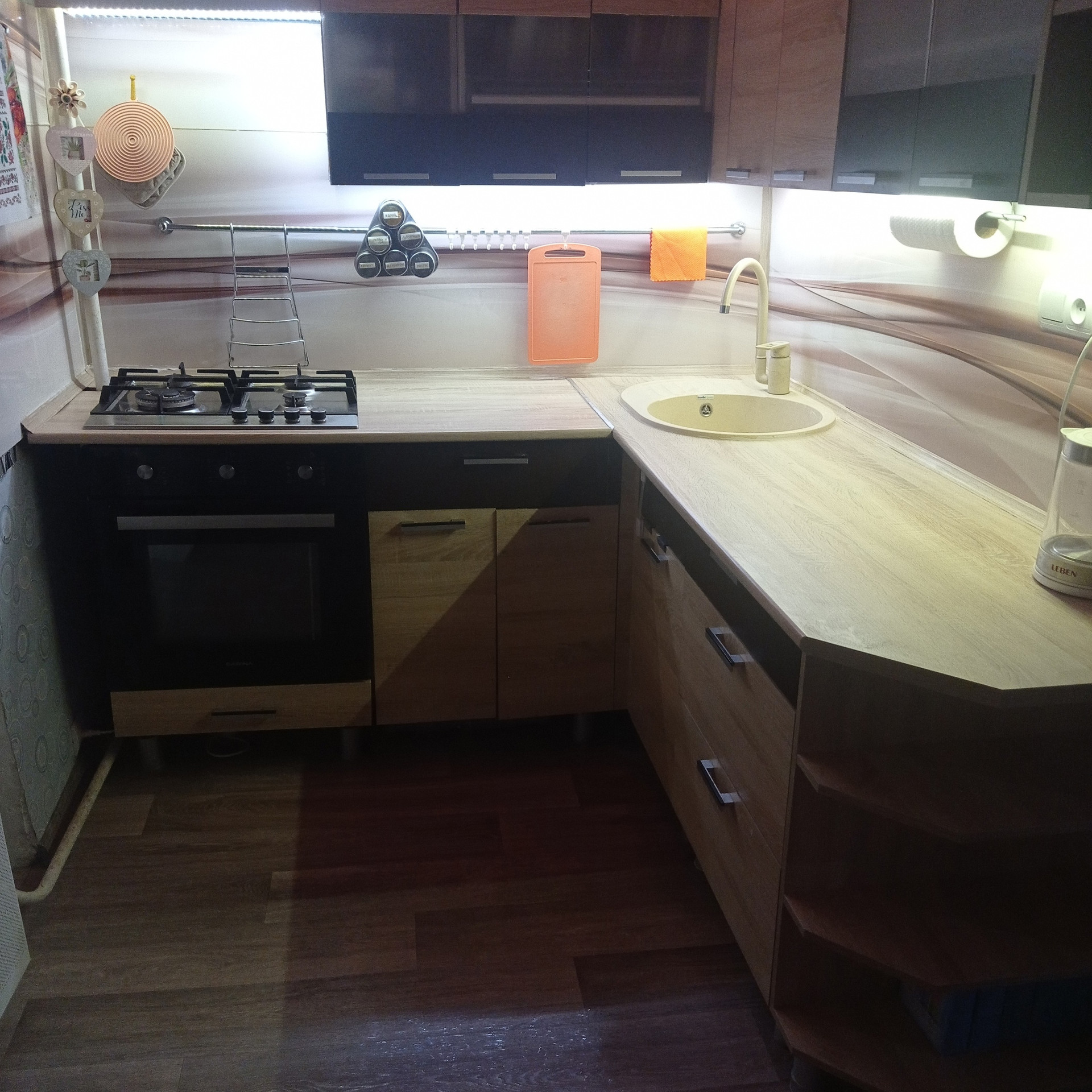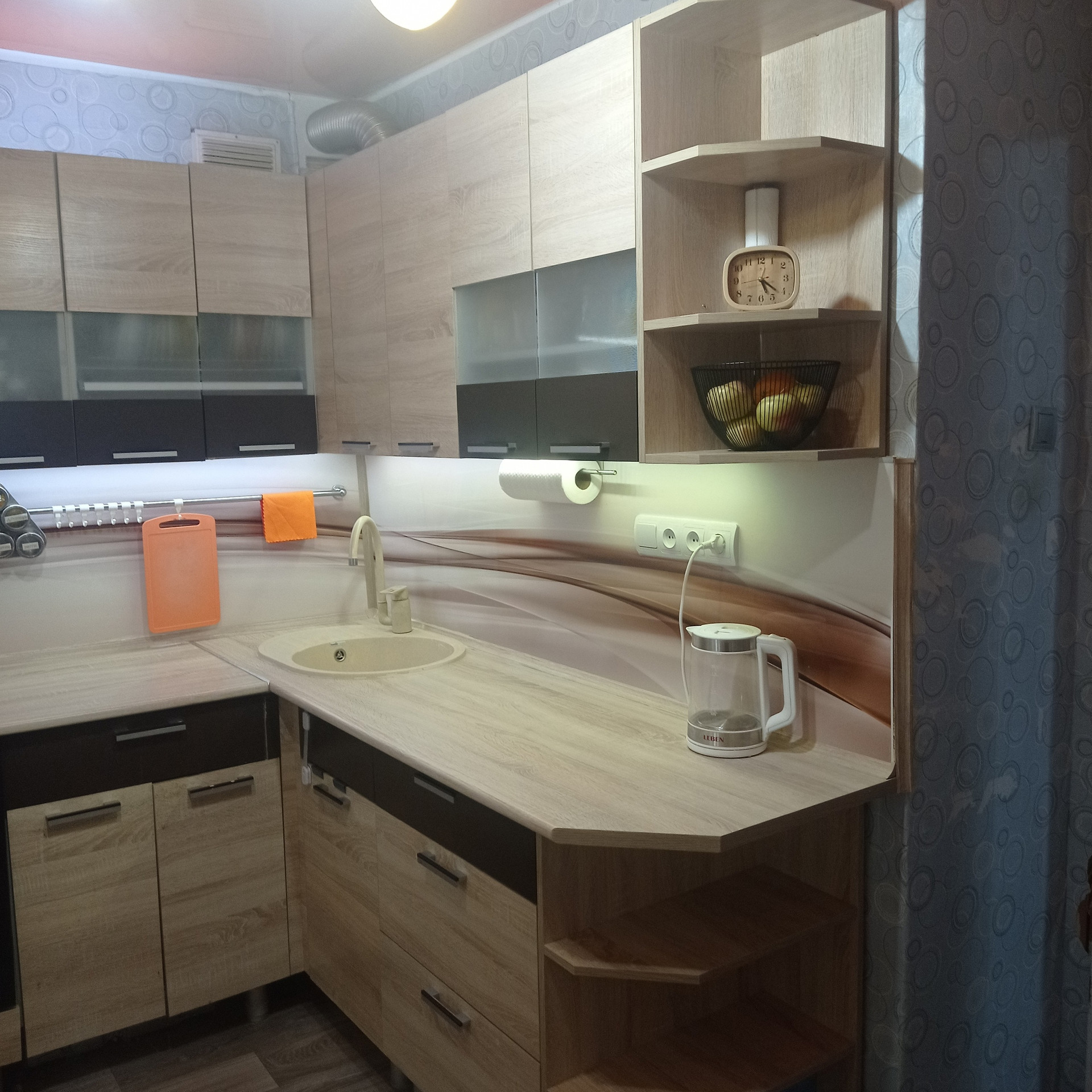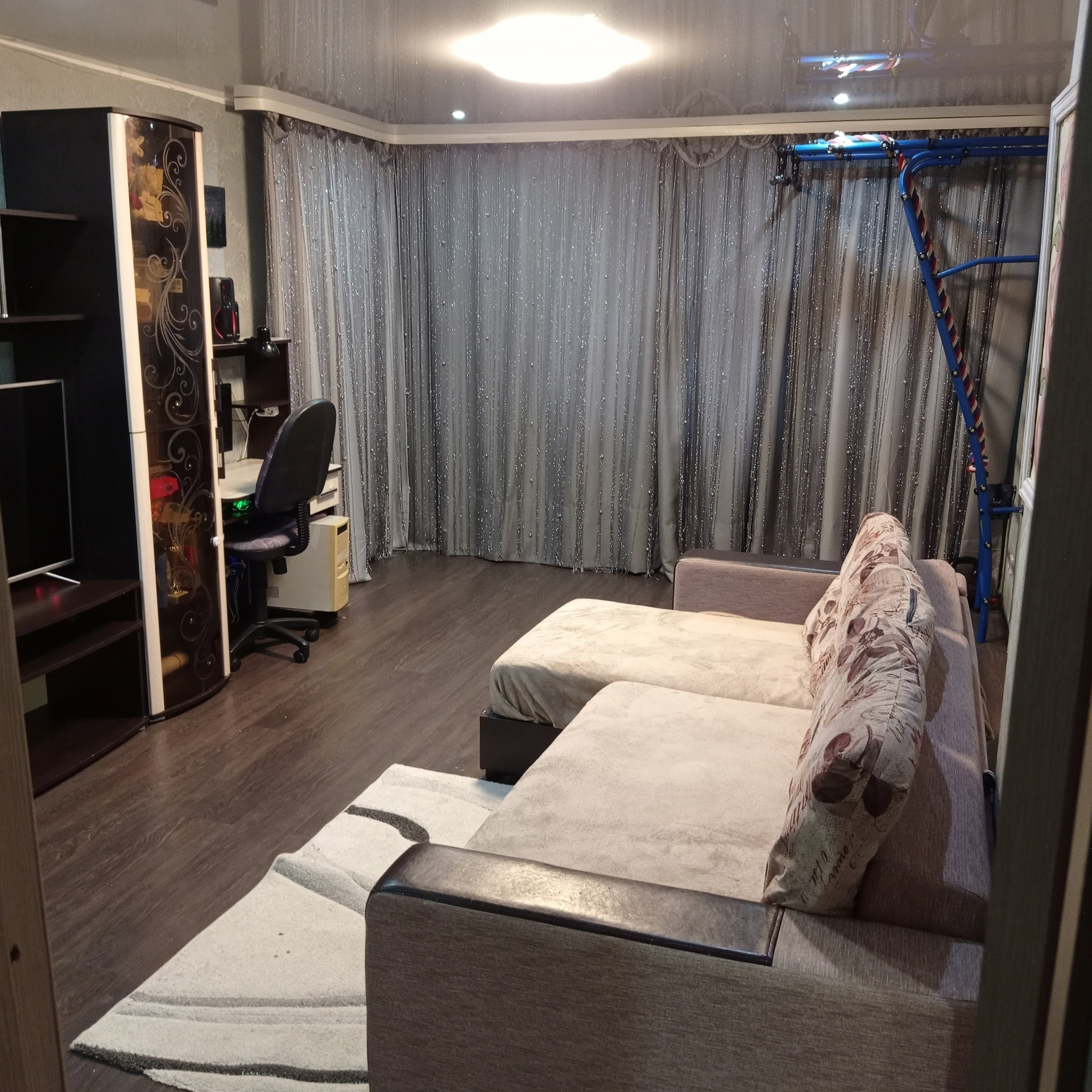 Продам благоустроенную квартиру, полутора комнатную, 1 этаж. В квартире есть косметический ремонт, заменена сантехника (отличное давление холодной воды), счётчик на воду, газ. Раздельный санузел, кухонный гарнитур, встроенная газовая колонка, стиральная машина, гостиная стенка со шкафами под телевизор с двумя платяными шкафами, встроенный подиум-кровать (всё, что нужно для комфортного проживания). В квартире имеется застеклённый балкон, два окна ПВХ (кухня, спальня). В гостиной, в спальне постелен ламинат, натяжные потолки в гостиной и кухне. В квартире тепло зимой, прохладно летом. Имеется домофон, снег чистят регулярно, напротив окна кухни открытая парковка.