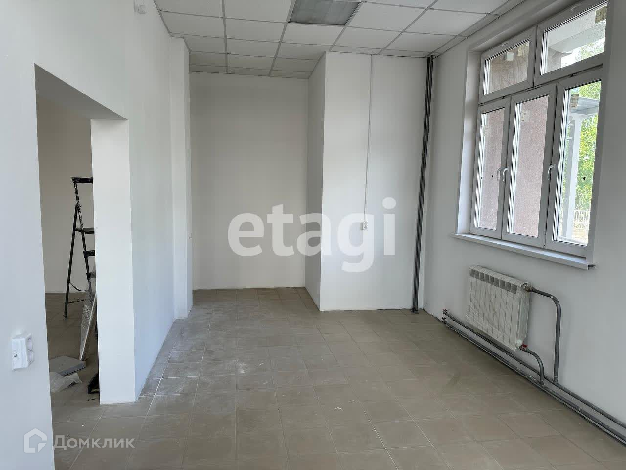 Помещение свободной планировки с высотой потолков 3.2 м (с учетом подвесного потолка - 3.0 м), планировка свободная. Выполнен ремонт, на полу плитка, потолок - армстронг, стены - финишная шпаклевка.