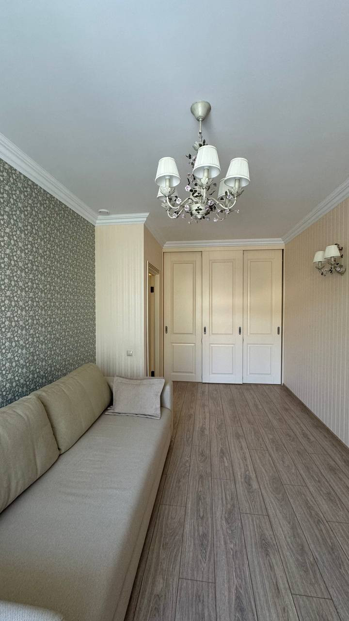 В доме 3 этажа: на первом большая гостинная, санузел, сауна и выход на небольшой участок.