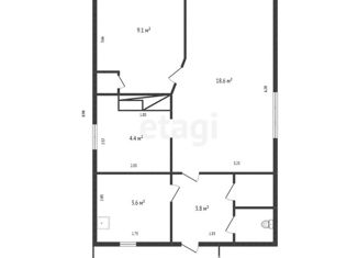 Общая площадь: 34.6 м2