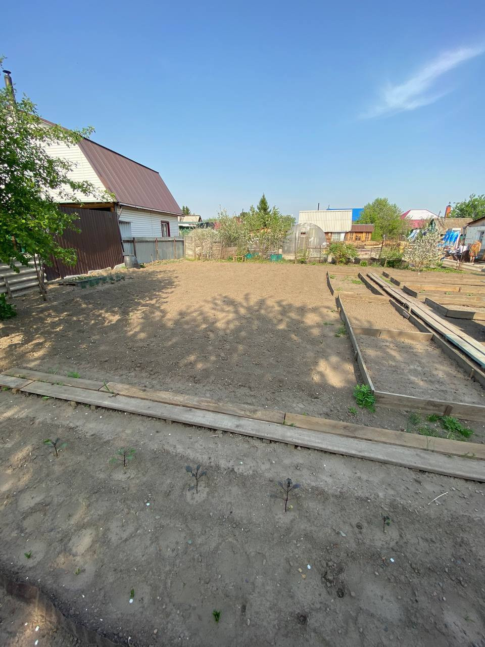Земельный участок разработан, на участке беседка, хоз.постройки. Соседи живут круглый год.