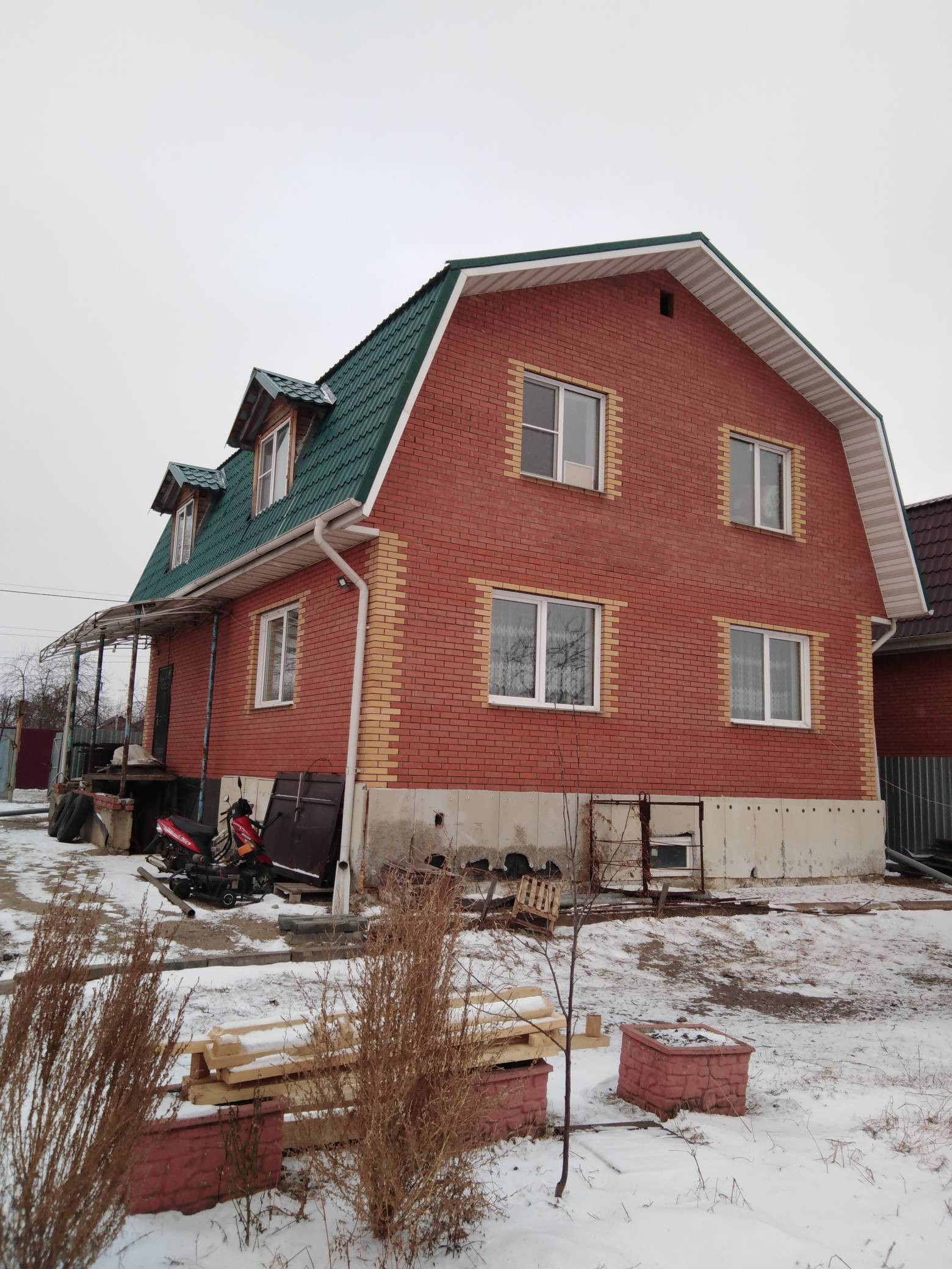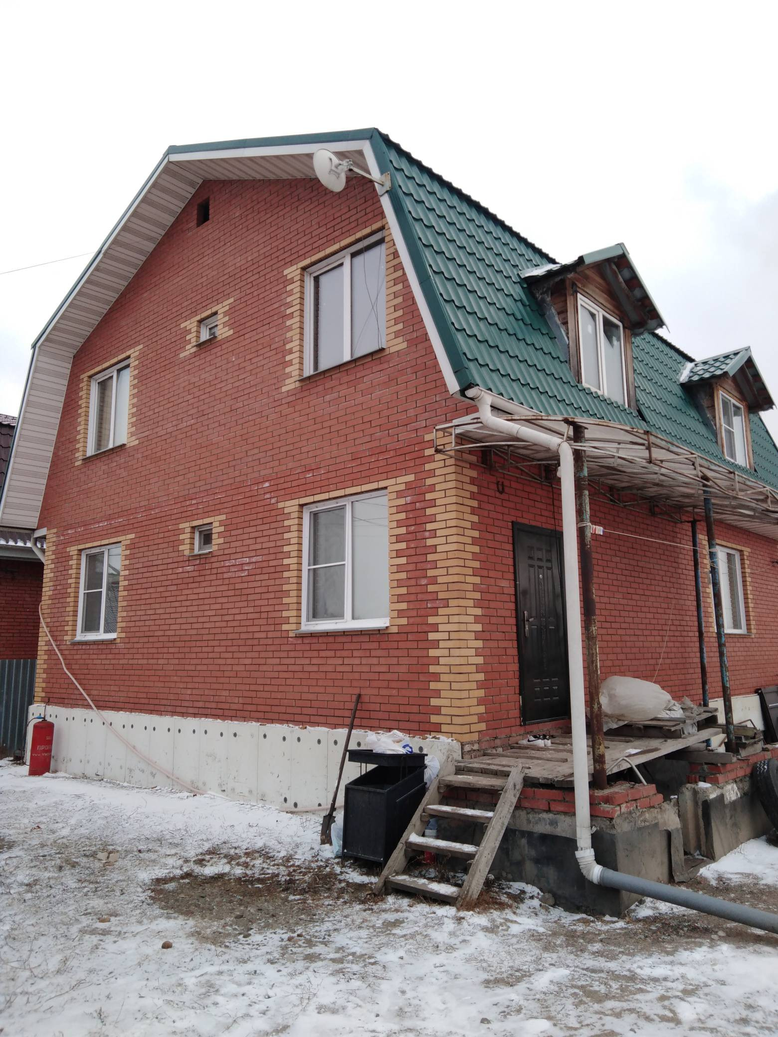 2-х этажный +цоколь, 235 кв. м. шлакоблок + облицовочный кирпич, ширина стен 42 см. Фундамент заливной-ленточный 50*60+арматура+изоляция. На первом этаже полы немецкий керамо-гранит с подогревом, натяжные потолки, зал 45 кв. м , кухня 13,4 кв. м. в санузле нужен ремонт. На втором этаже  ведутся ремонтные работы. В цоколе находится комбинированный котел, коммуникации, бойлер. Септик на 8 колец. Крыша покрыта металло-черепицей. Земельный участок ровный 10 с/земли, ухоженный, имеются насаждения: плодово-ягодные деревья, кустарники. К дому круглогодичный подъезд! Звоните, договоримся о времени просмотра. Городская прописка.