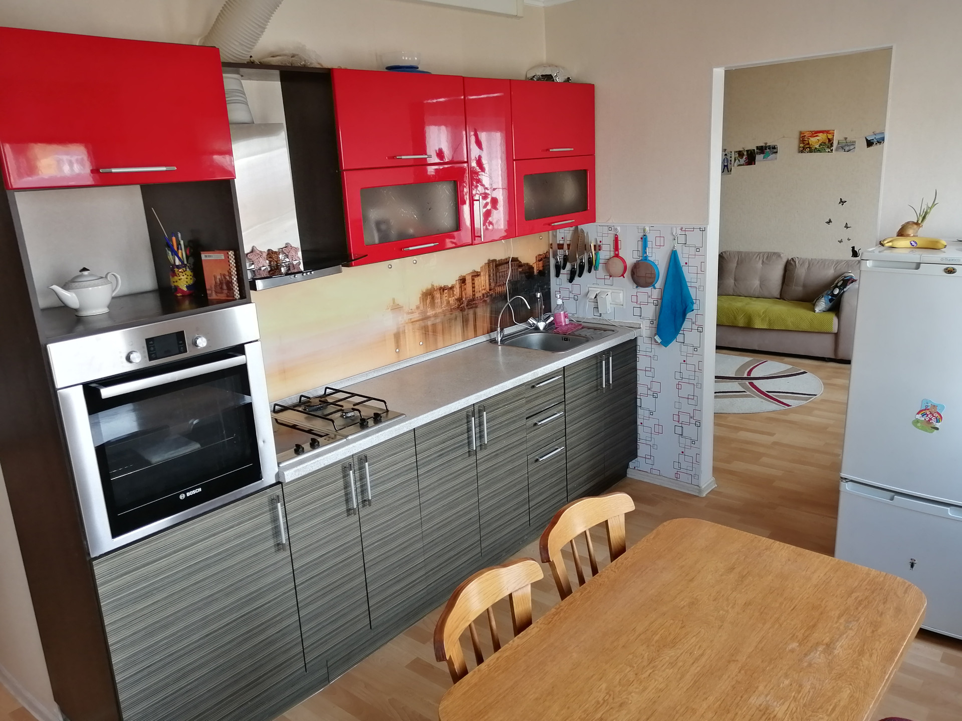 С домом остаются кухонный гарнитур со встроенным духовым шкафом, варочными электро- и газовой панелями Bosch.