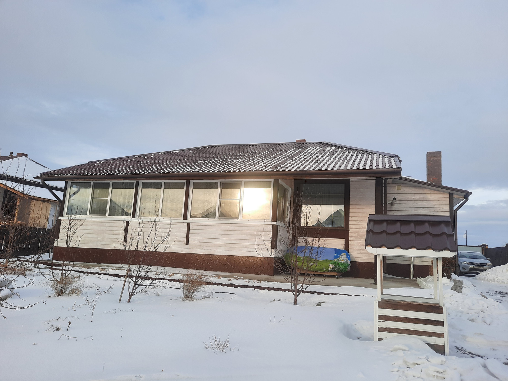 Продается дом 113 кв.м, 1-этажный, кирпичный, отделан деревом, крыша песчанно-цементная черепица / шифер /. В доме выполнен качественный ремонт: стены покрашены, натяжные потолки, пол ПВХ / Турция /, санузел в кафеле, высота потолков 2.80. Отопление автоматическое: газовое, электрическое / теплые полы /. Водоснабжение и канализация централизованные. Остается встроенный кухонный гарнитур с бытовой техникой, спальный, гостиный и прихожая, два огромных шкафа купе. На участке построены: гараж 5*7 / погреб /, баня 4*4 /сарай для дров и хозяйственная постройка /, беседка / мангал, тандыр /, теплица 6*3. Участок разработан, завезена земля, перегной. Плодоносящий сад: яблоня, груша, малина, смородина, вишня, жимолость, садовая клубника, декоративные многолетние кустарники, и цветы.
