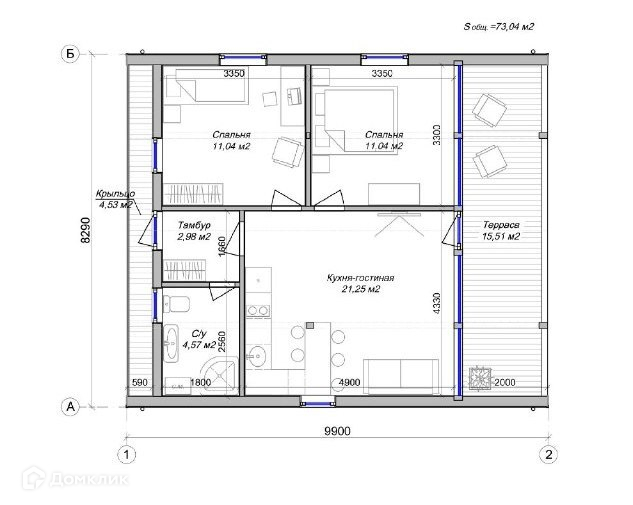 Общая площадь 73 м2