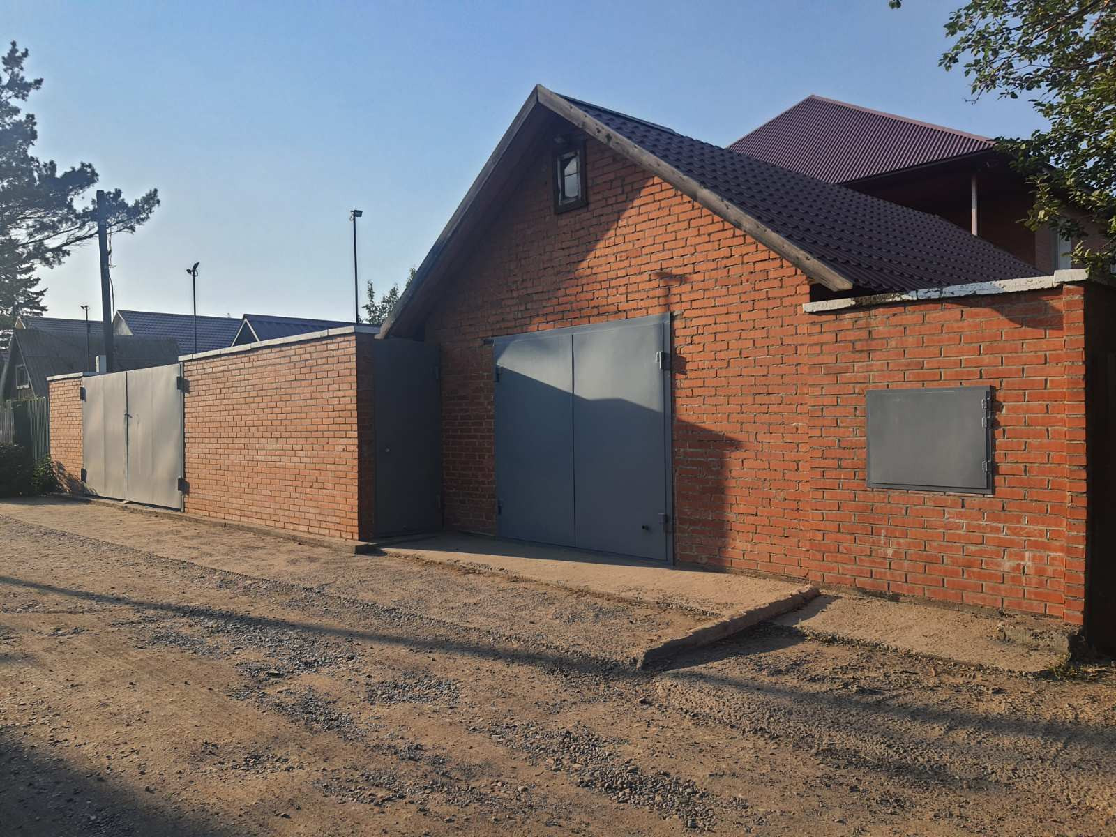 На участке есть капитальный,кирпичный гараж площадью 33 м2, углярка, вольер для собаки, навес, плодовые деревья, а так же уютное место для отдыха с качелей и мангалом.