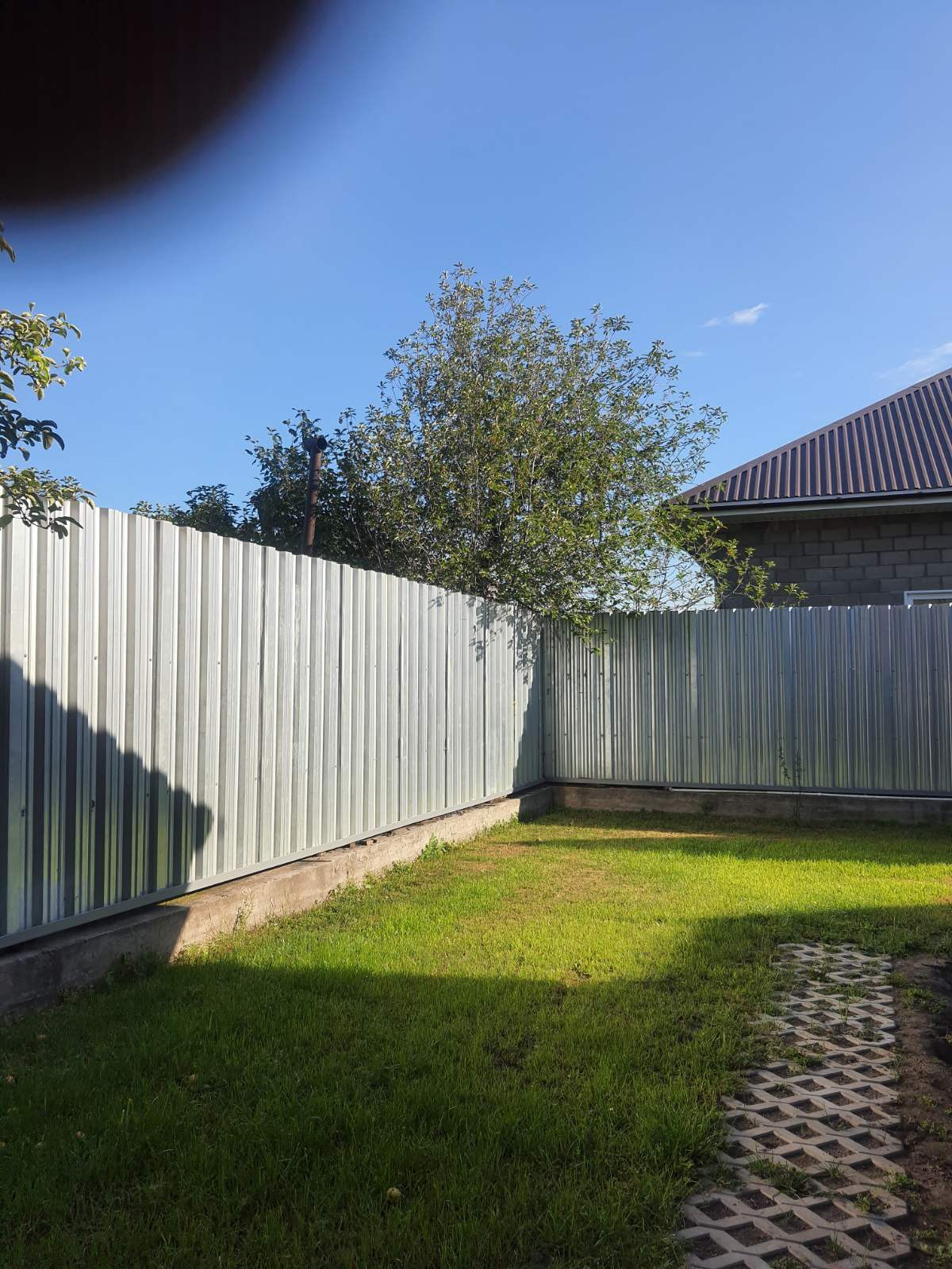 По всему периметру участка 2м забор из профлиста, на бетонном основании.