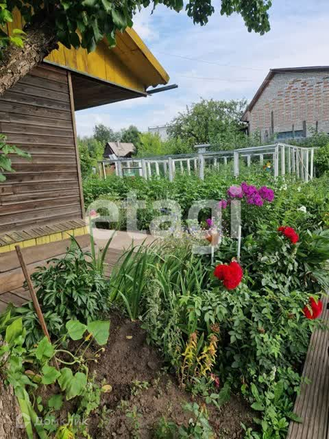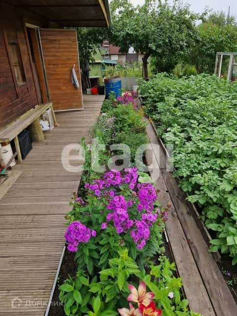 По всему периметру дома террасная доска..На участке много кустов и деревьев.Малина-очень крупная ,смородина,деревья-груша и ранетка, ирга. черноплодная рябина,крупные сорта,жимолость с питомника .Многолетник-розы.флоксы, лилии ,разновидности гвоздик.