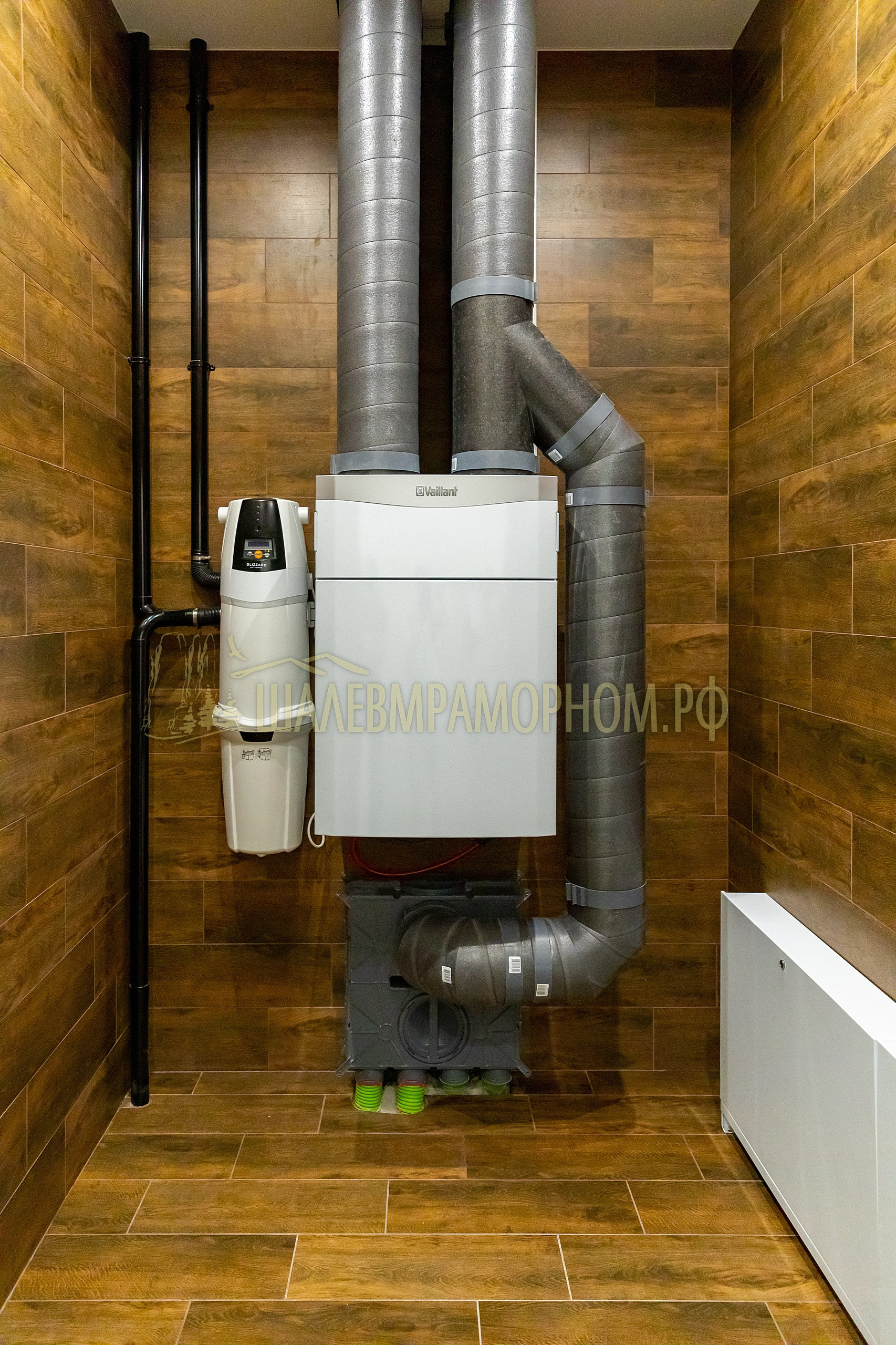 Технологии умного дома. Немецкое газовое оборудование Vаillаnt с газгольдером на 15м3 - достаточный объем хранилища для годового обогрева строений без дозаправки. Система уборки дома с пневморозетками в помещениях для переносного пылесоса. Приточно-вытяжная вентиляция и кондиционирование дома с фильтрами и датчиками углекислого газа. Электроразводка с индивидуальными переключателями по зонам.