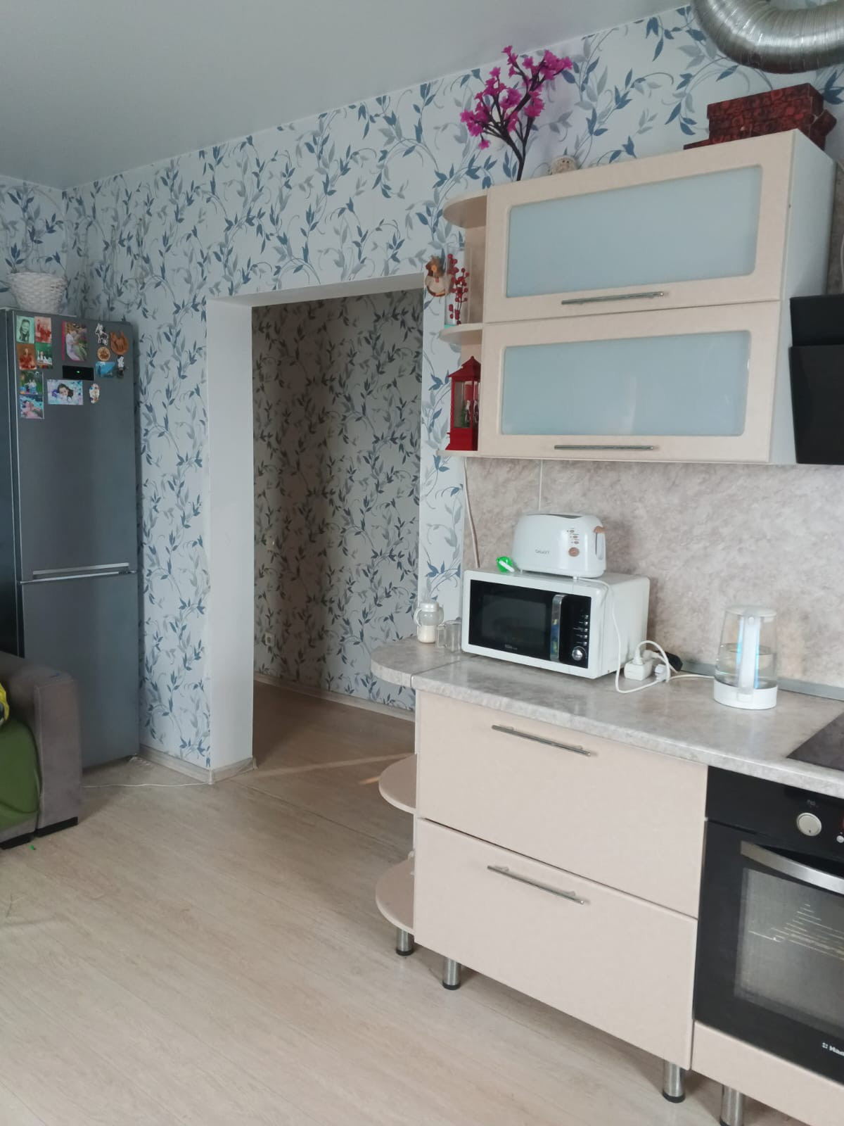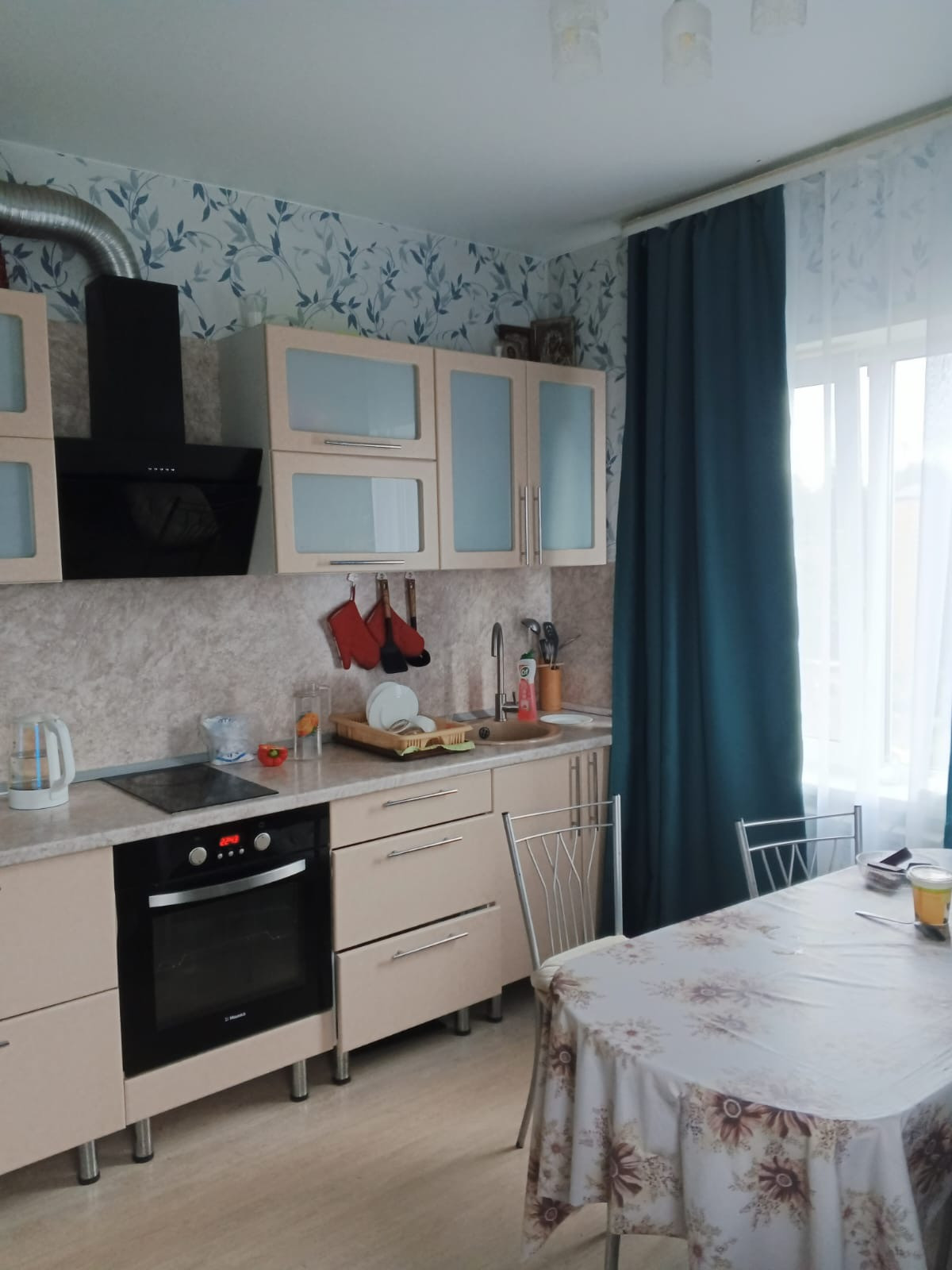 Остается удобная встроенная кухня и шкафы. Рядом - школы, детские сады и все необходимые инфраструктуры.