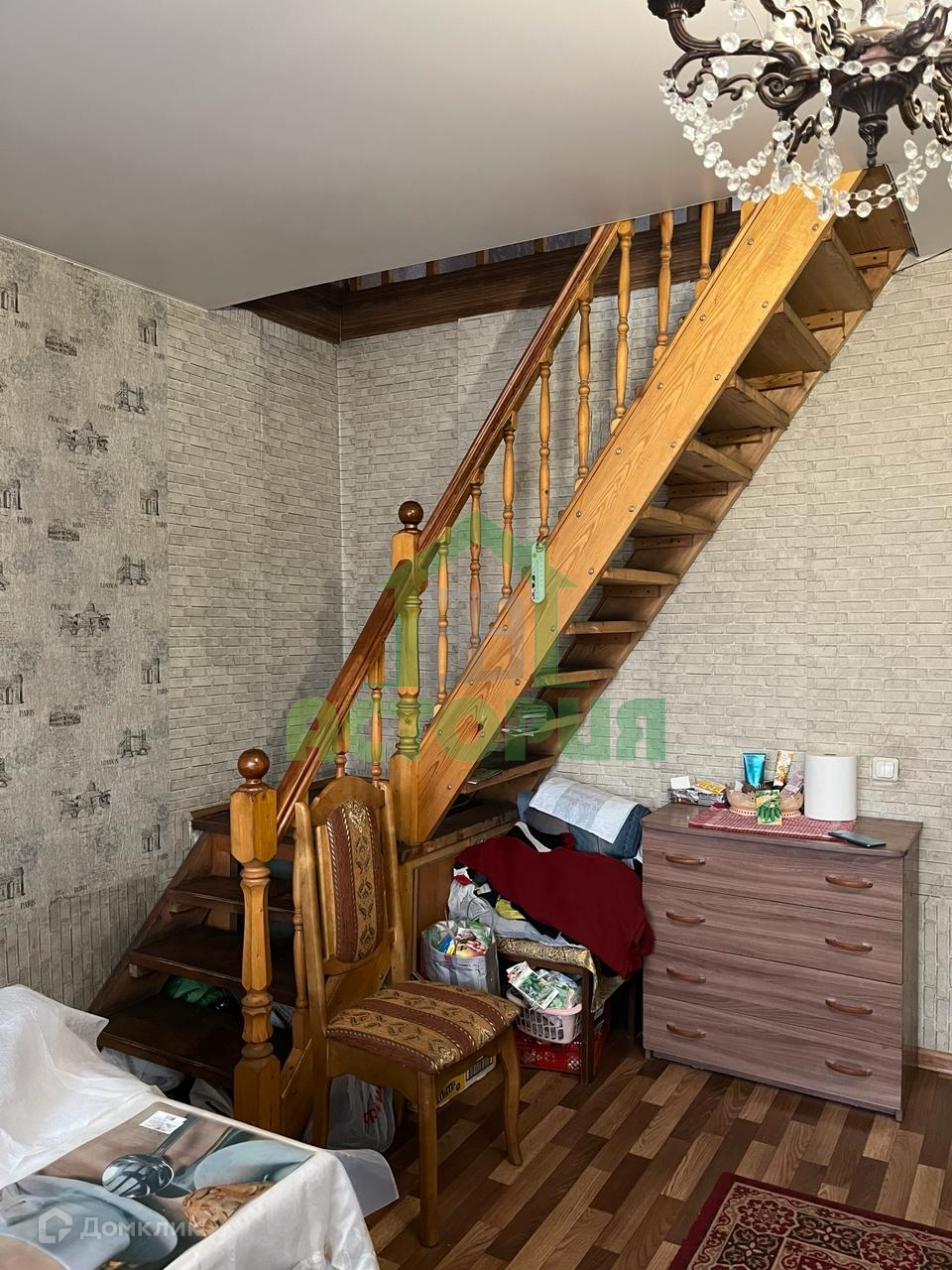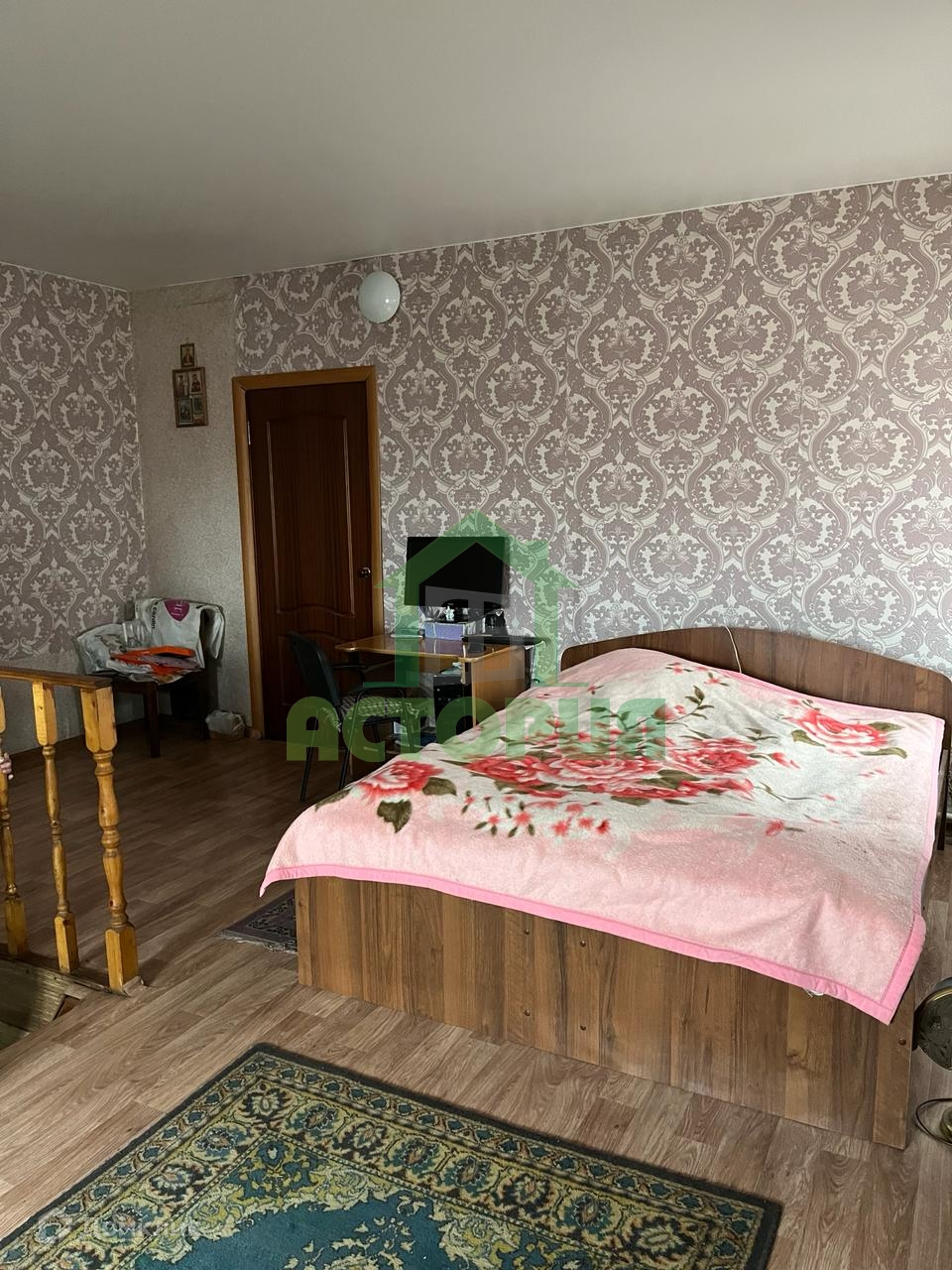 Дом расположен в черте города, двухэтажный, блочный, очень теплый, с высокими потолками, на полу ленолиум, на стенах обои, натяжные потолки.