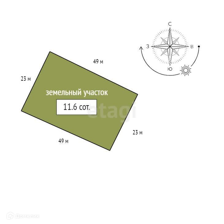 Площадь участка 11.6 сот.