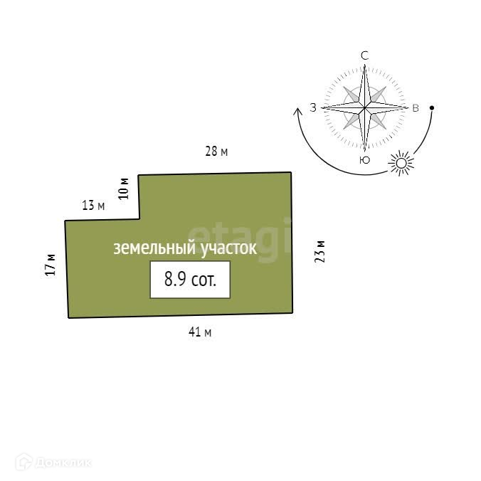Площадь участка 8.9 сот.