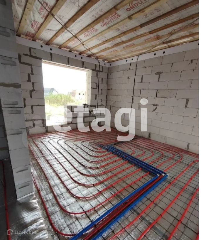 Снаружи дом будет отделан штукатуркой короед, на фото видно, что оштукатуривание осуществляется на сетку, по нормам. Теплые полы. Отдельная пристройка и дверь на котельную. Водонагреватель, котел - установлены.