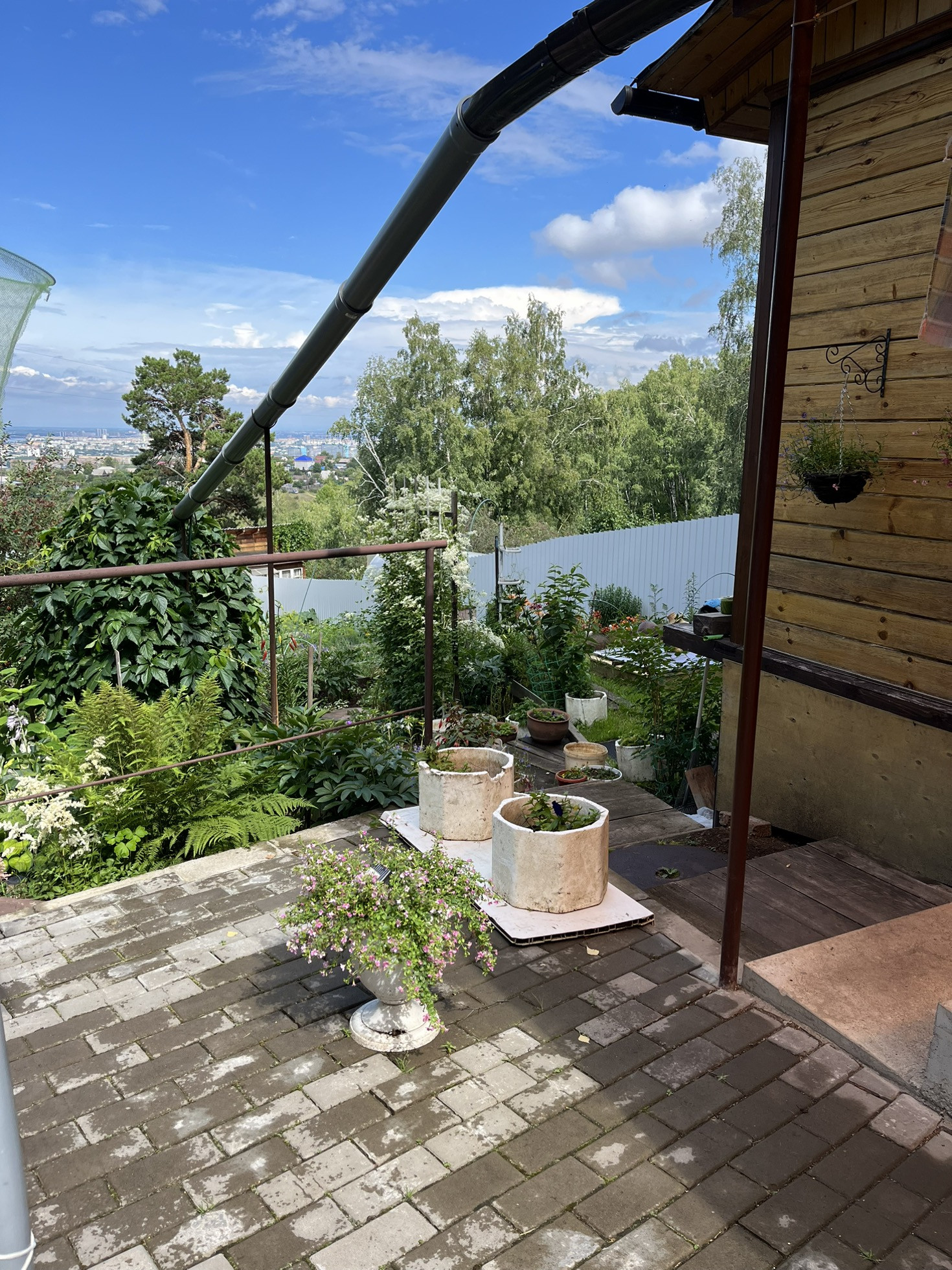 Участок на небольшом склоне, что дает большой полет для воплощения Ваших дизайнерских идей в реальность. Красивый вид на город.
