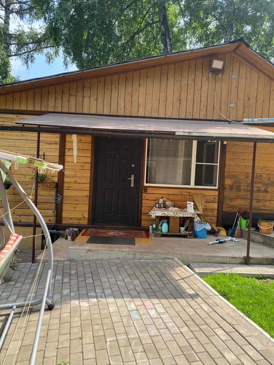 На участке небольшой домик (4,6*4,8), летняя кухня (3,6 *5,4), баня (5,1*4,8), хозяйственные постройки, хороший погреб, курятник, теплица, 5-ти тонный контейнер для хранения хоз. инвентаря.