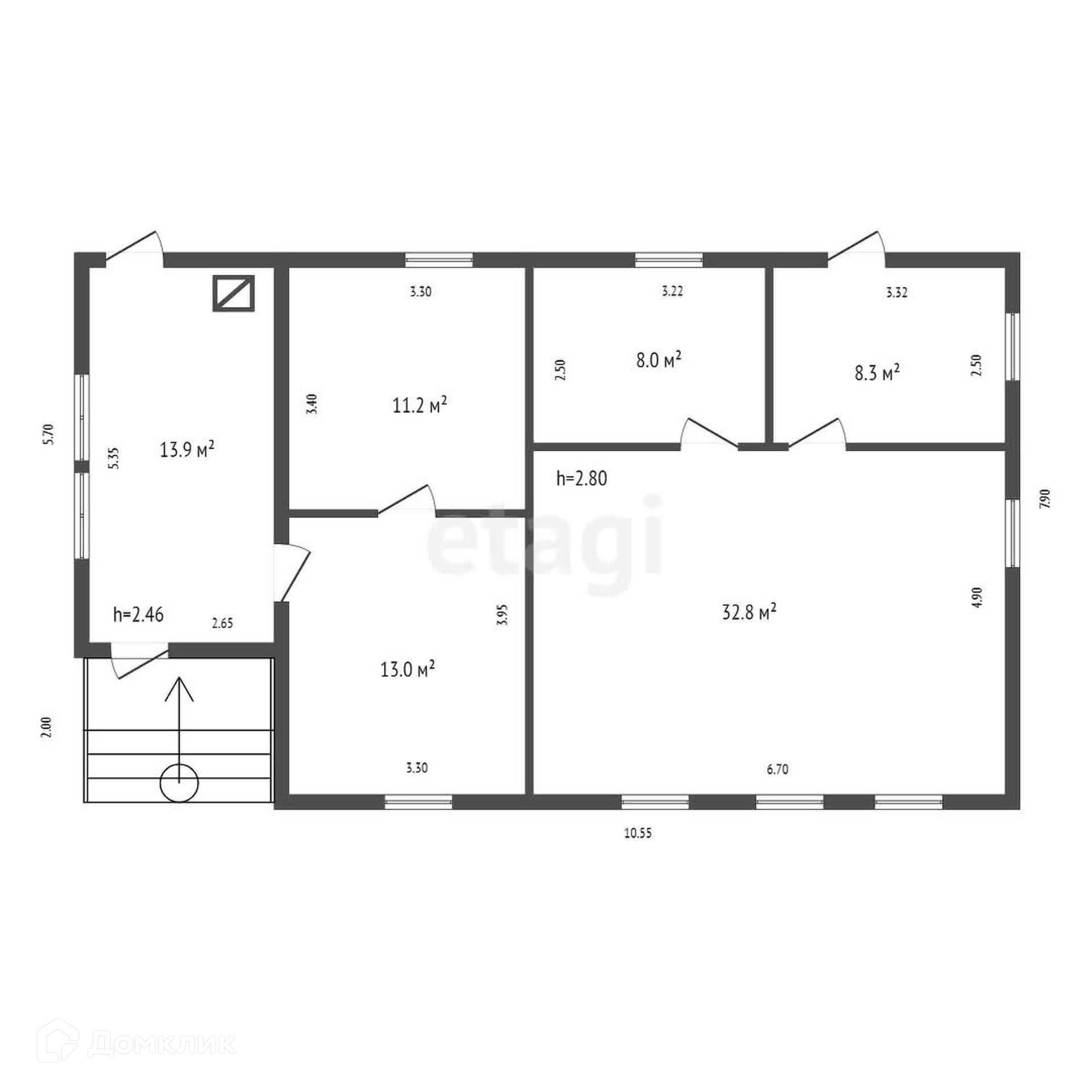 В вашем распоряжении — светлая кухня и пять просторных комнат, где каждый член семьи найдет свое уютное место. К дому пристроена котельная, а также баня, где можно расслабиться после долгого дня.