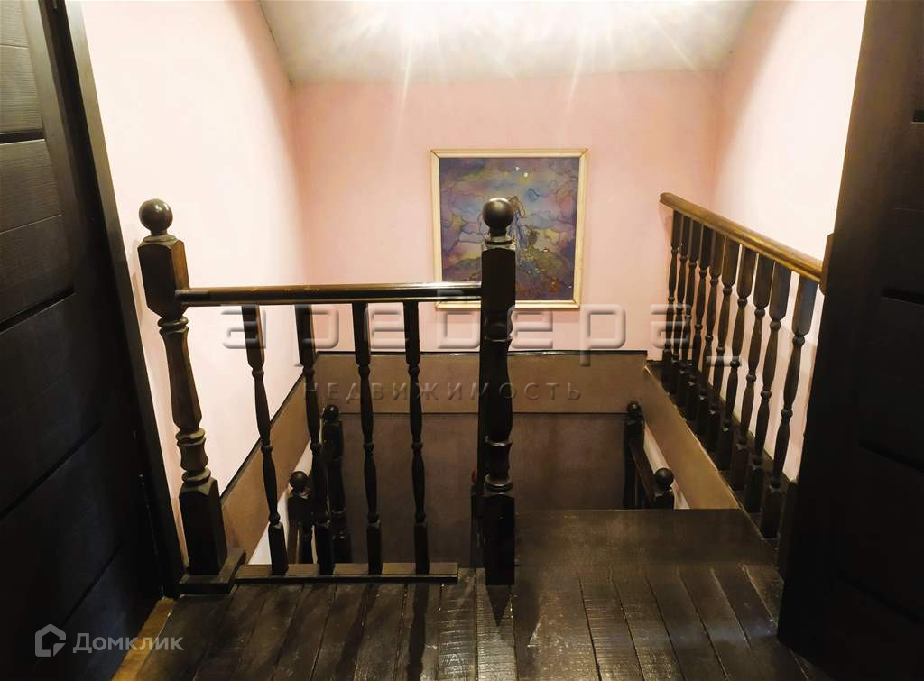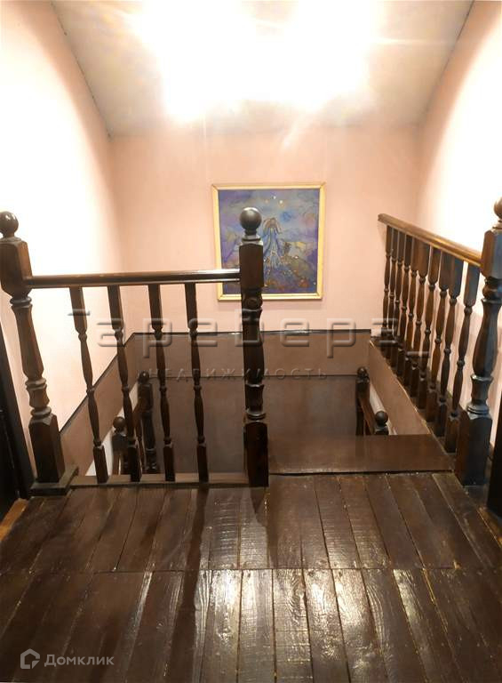 На второй этаж ведет деревянная лестница, из спальни имеется выход на балкон.