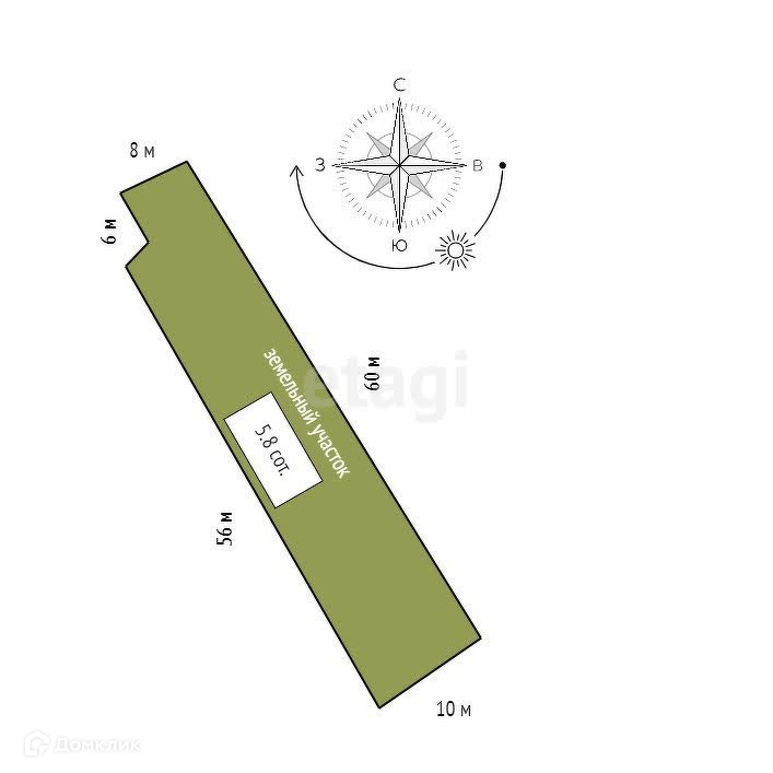 Площадь участка 5.8 сот.