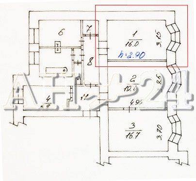 Высота потолков 2.9 м