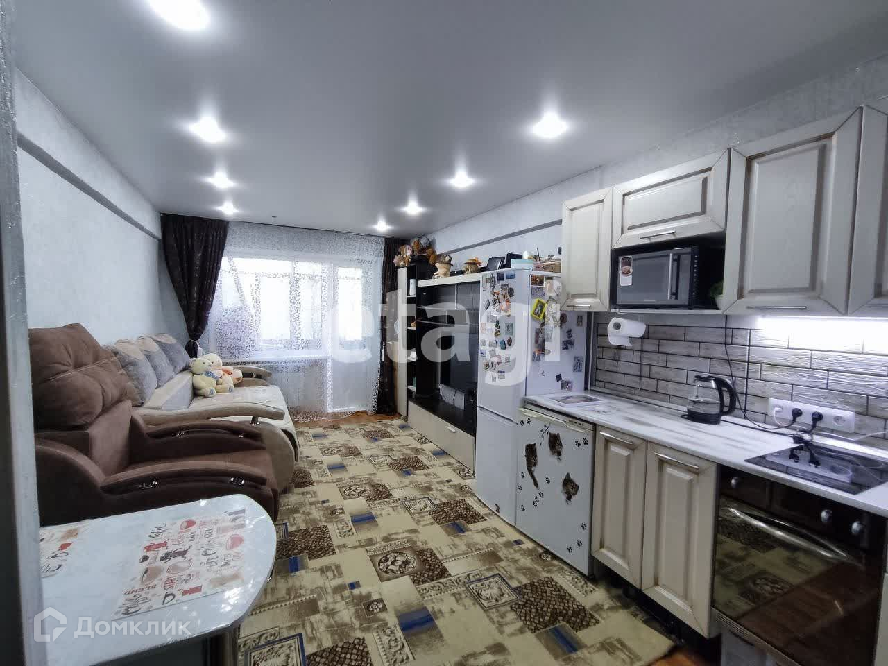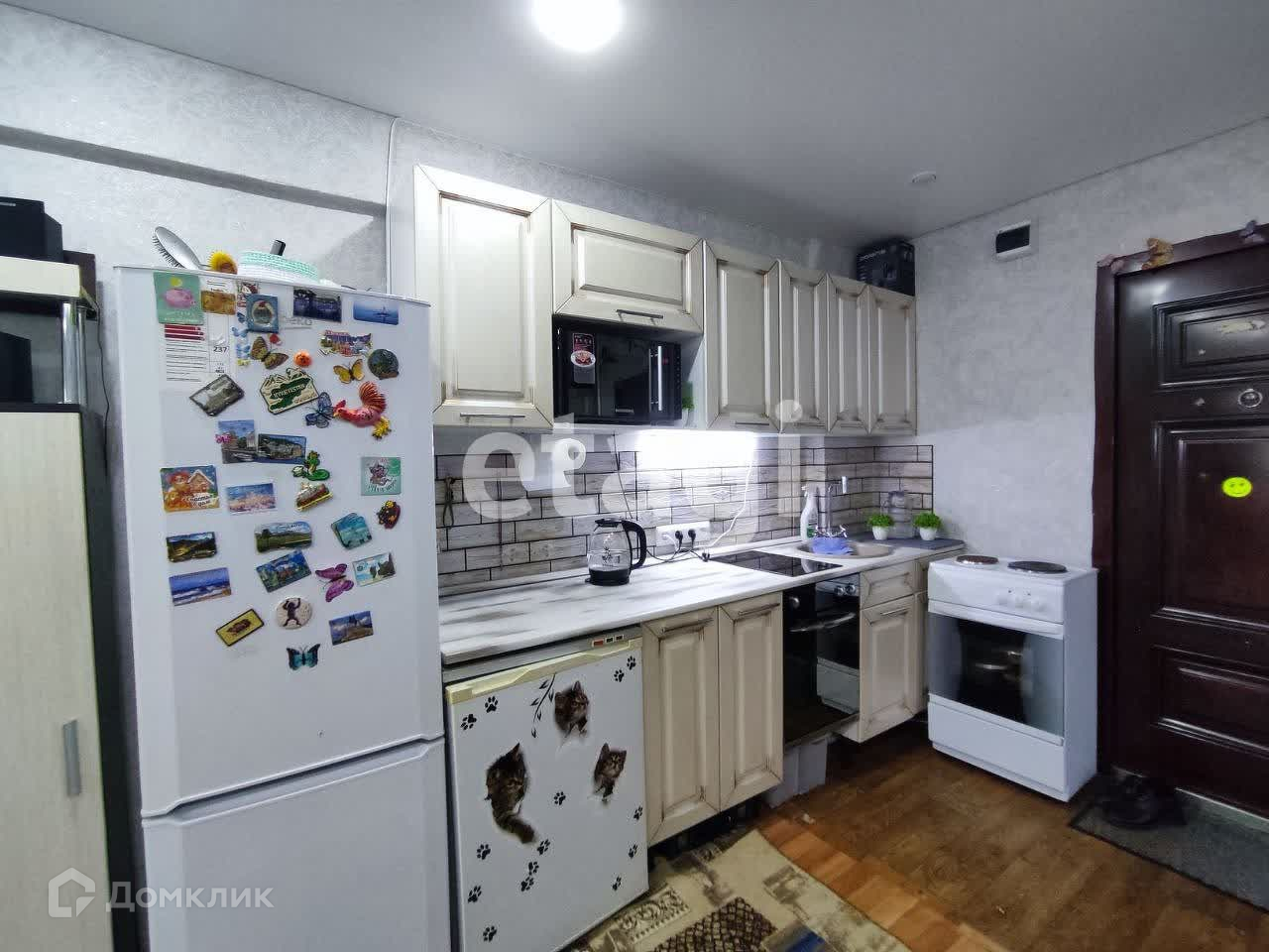 Сделан качественный евроремонт. В комнату проведена вода, оборудована кухня, заменена проводка, потолки натяжные, железная дверь.