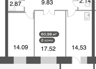 Продаю 2-ком. квартиру, 60.2 м2, Высотная улица, 2Ц