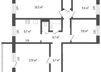 4-комнатная квартира на продажу, 77.3 м2, улица Петра Словцова, 12