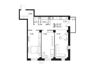 Продается 3-комнатная квартира, 81.57 м2, Высотная улица, 2Ц