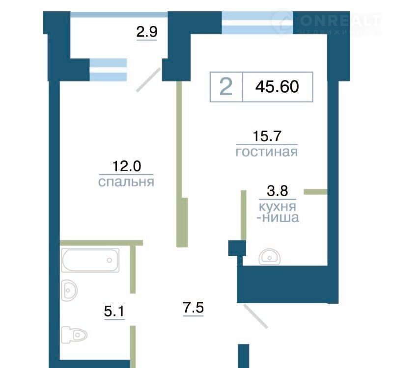 Общая площадь 45.6 м2