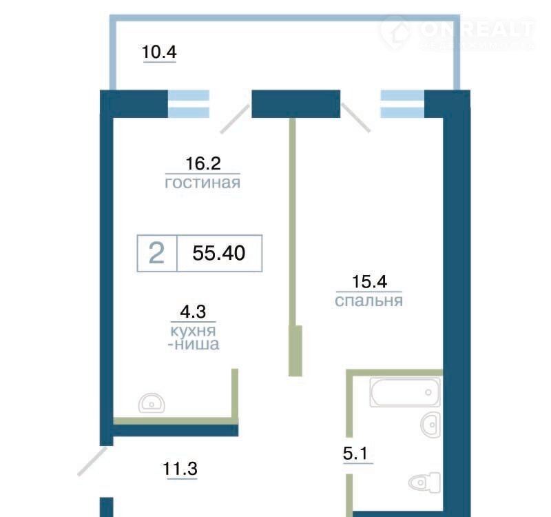 Общая площадь 55.4 м2
