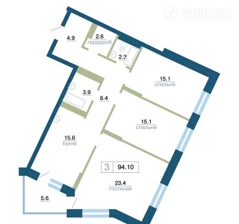 Общая площадь 94.1 м2