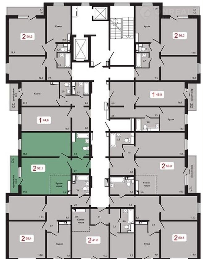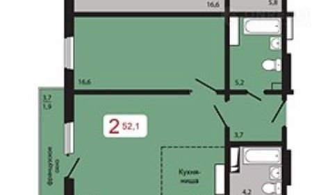 Общая площадь 52.1 м2