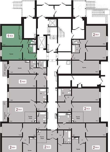 Общая площадь 42 м2