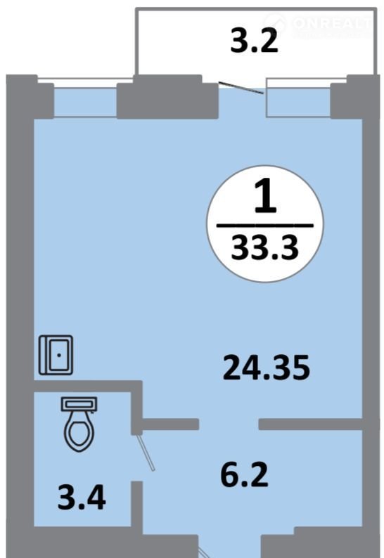 Общая площадь 33.9 м2