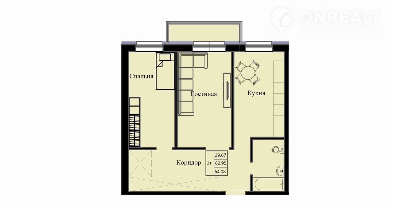 Общая площадь 64.1 м2