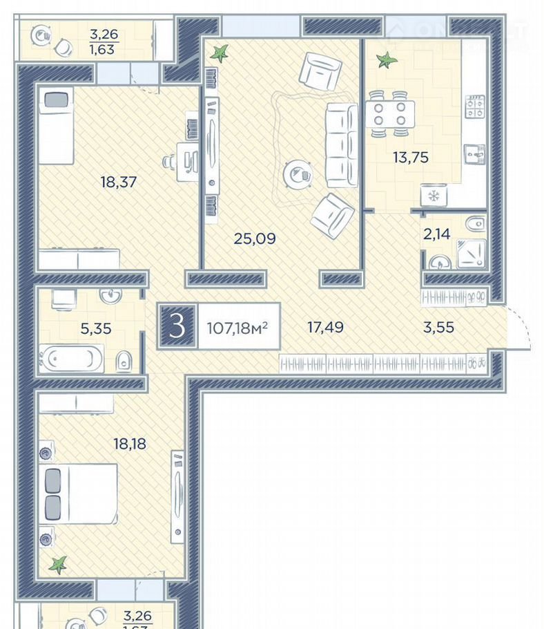 Общая площадь 107.2 м2
