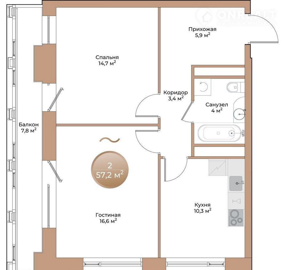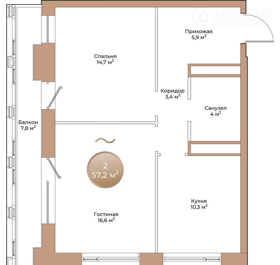Общая площадь 57.2 м2