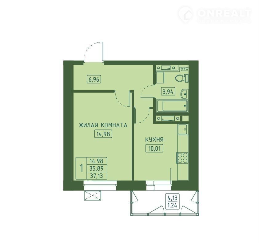 Общая площадь 37.1 м2